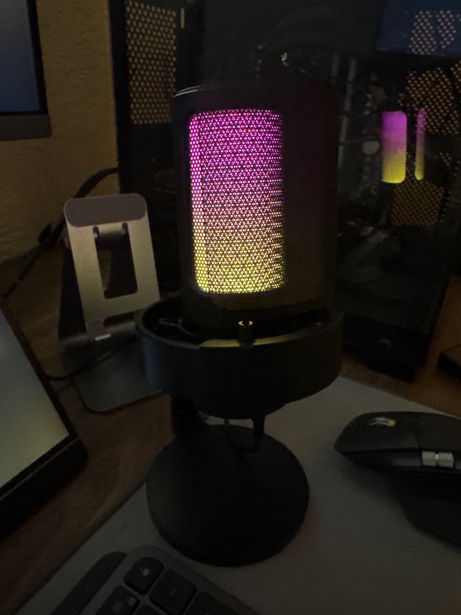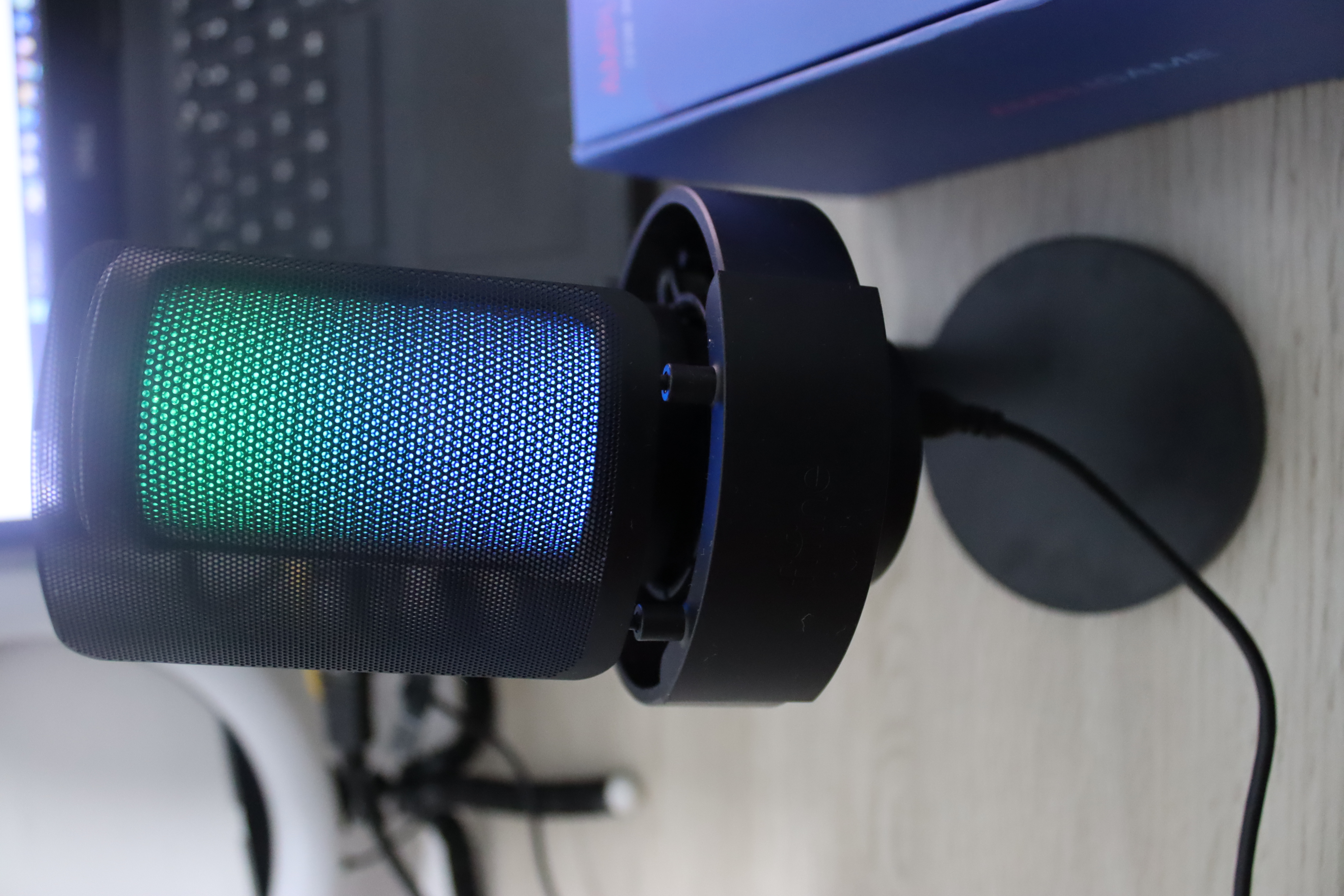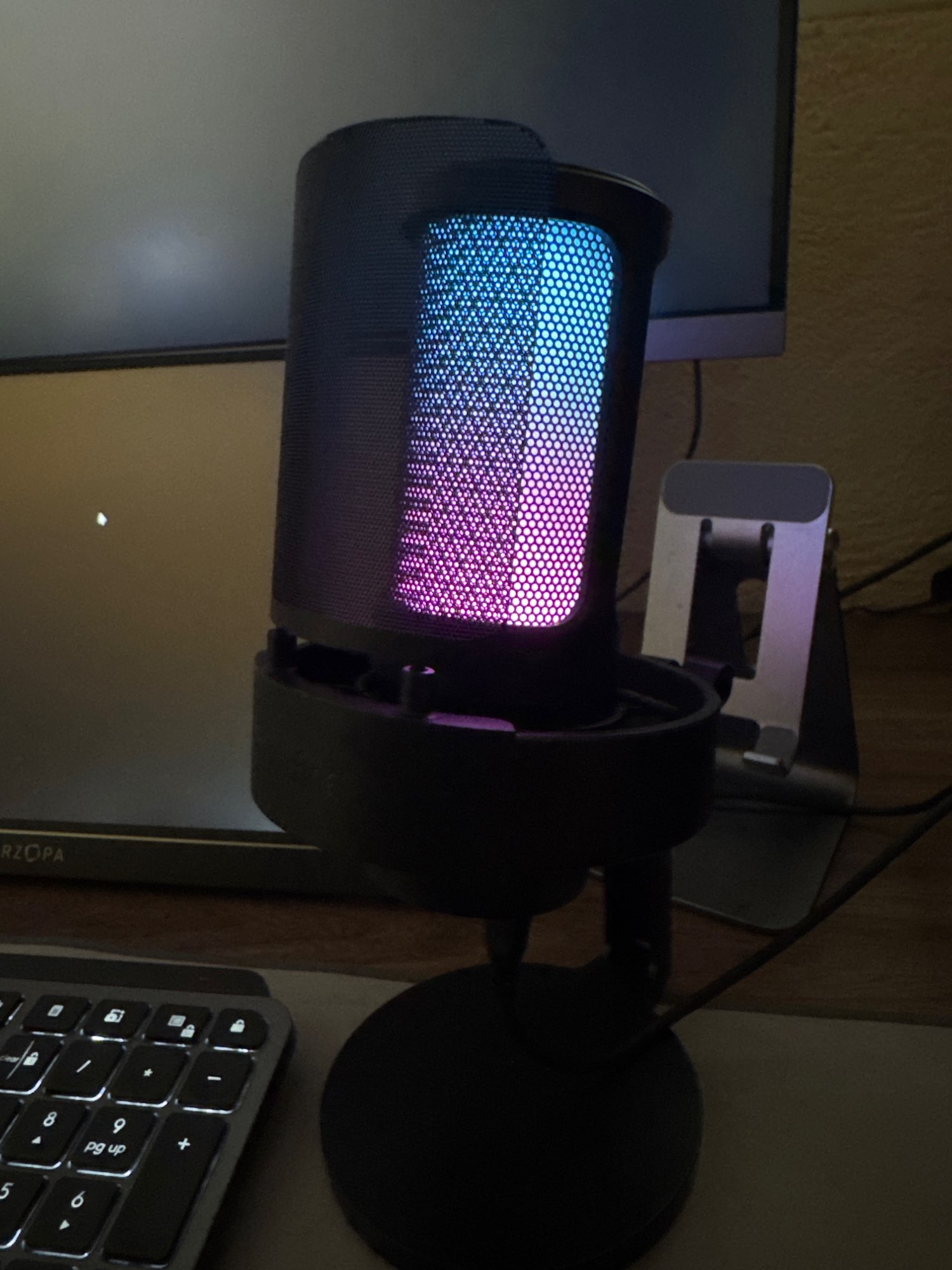 Микрофон хороший но направленный, цвета подсветки очень ограничены в количестве. Нужного может не оказаться (например фиолетового нет)