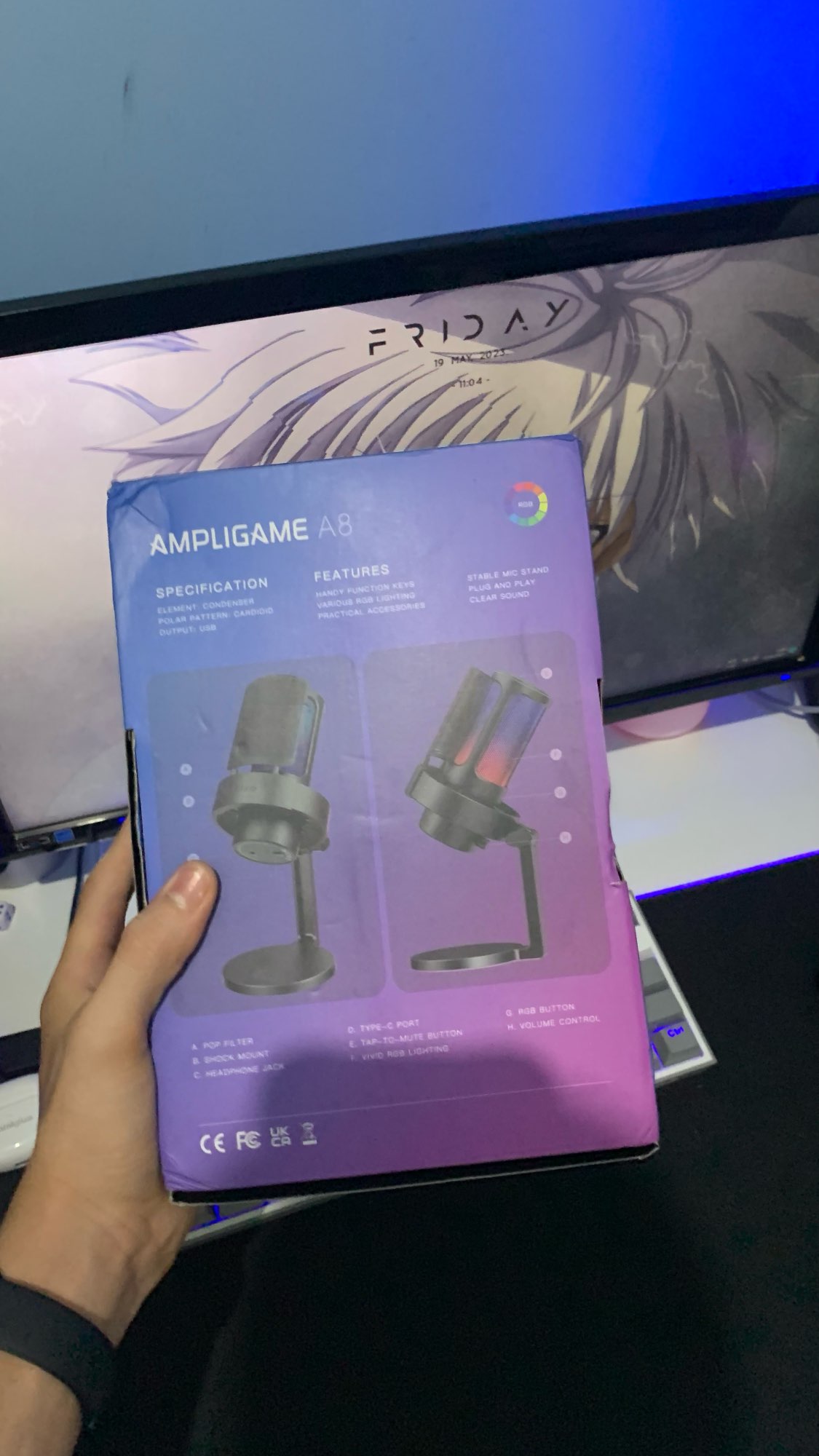 Very fast delivery, I bought April 15, arrived in exact 10 days! Excellent microphone, great construction. Is exactly as described in the image, impeccable sound. I bought it to make BandLab recordings and felt like I was in a professional studio. Amazing colors, congratulations to the seller. * Only a detail of the box come a little crumpled *