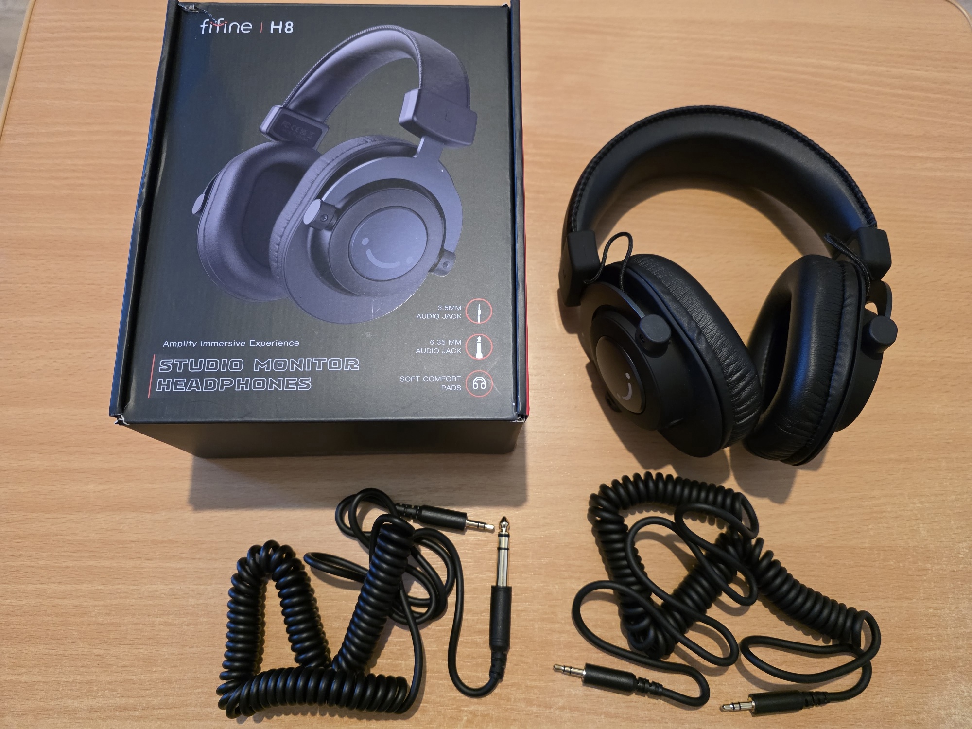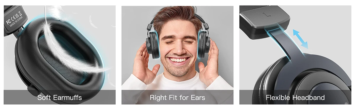 Удобные, мягкие и комфортные для ушей. Простые в использовании. Два трехметровых закрученных кабеля - 3.5x3.5 mm и 3.5х6.35 mm. Звук не плоский, шумы отсутствуют. И цена демократичная. Очень довольны.