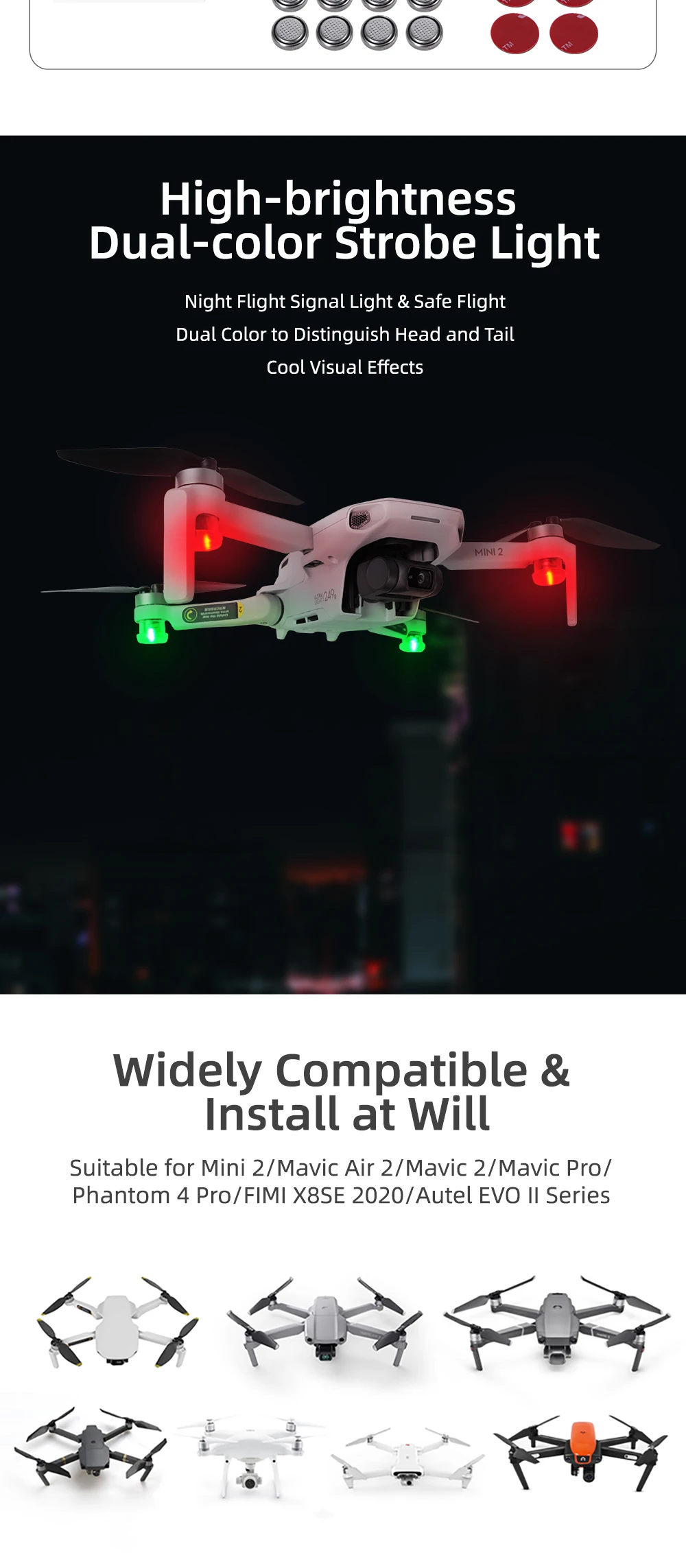 Flash Strobe Flight Light for DJI Avata FPV Drone Accessories /Mavic Air 2 /mavic Mini 2/AIR 3 Drone Lamp Night