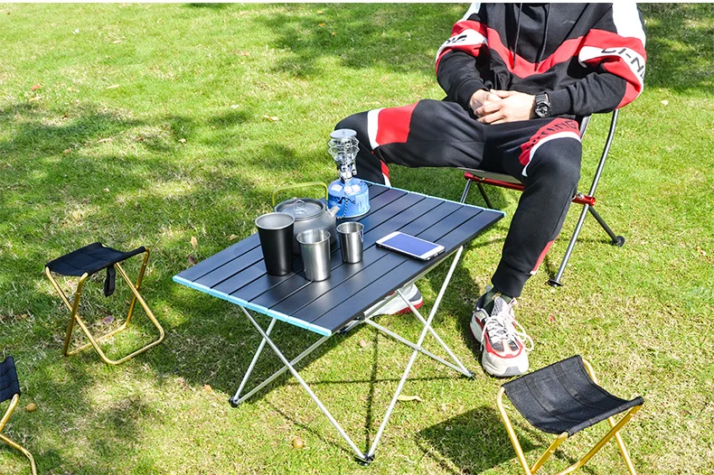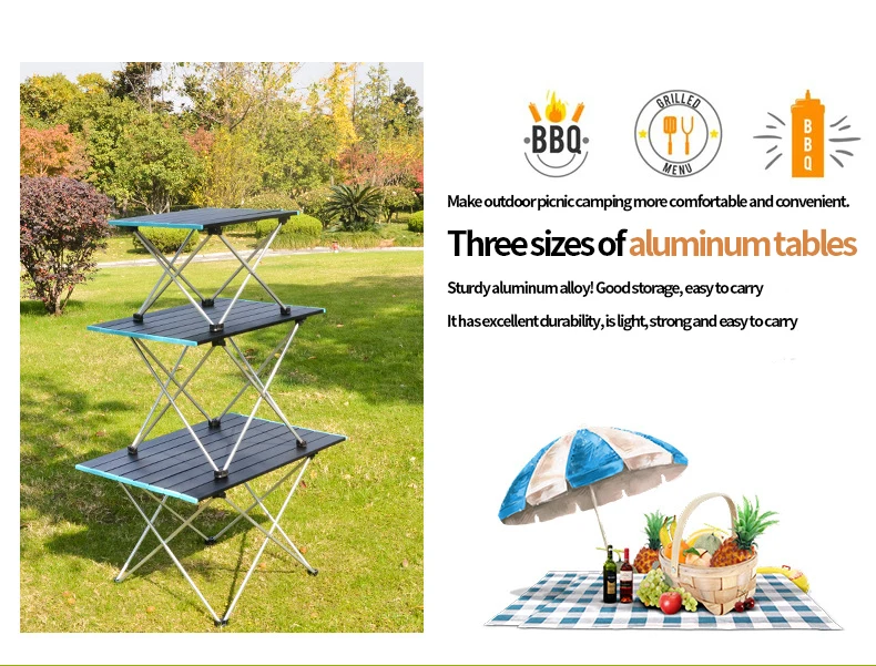Outdoor Picnic Folding Table High Strength Aluminum Alloy Portable Ultralight Camping Folding Dining Table for Family BBQ