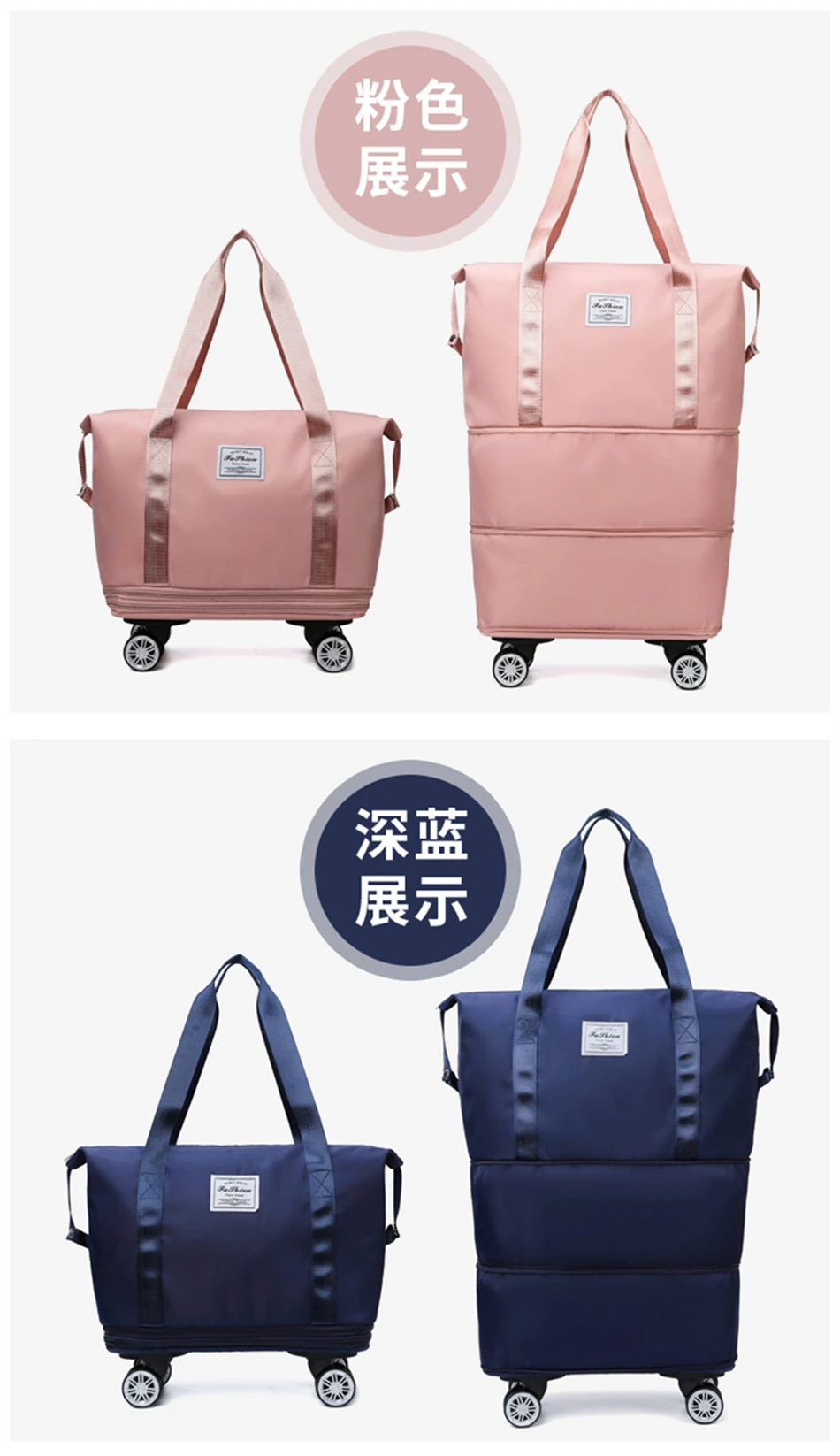 Folding Travel Bag Waterproof Extensible Duffle Tote Bag Big Capacity Storage Multi-Functional Gym Shoulder Backpack With Wheel