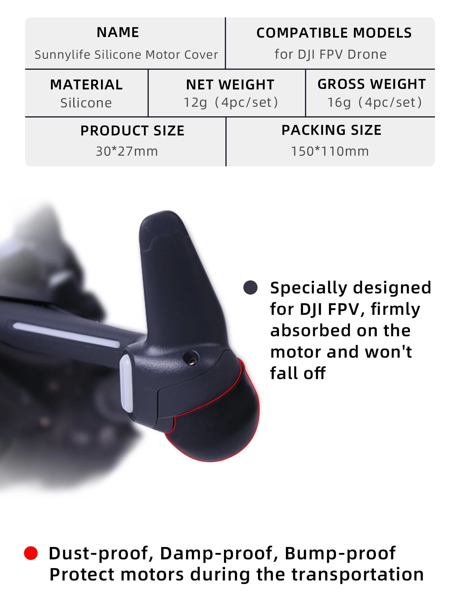 For DJI FPV Motor Cover Combo Drone Engine Protector Dus-tproof Cap Case Drone Protection Silica gel Accessories
