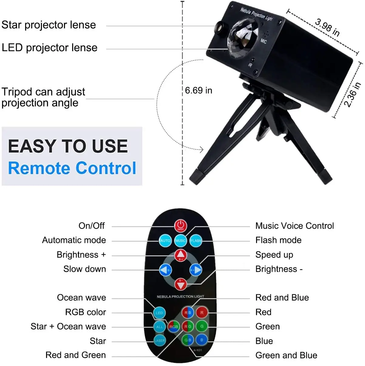 Galaxy Night Light Aurora Projector Lamp for Bedroom Star LED Ocean Wave 8 Lighting Modes with Remote Music Voice Control Tripod