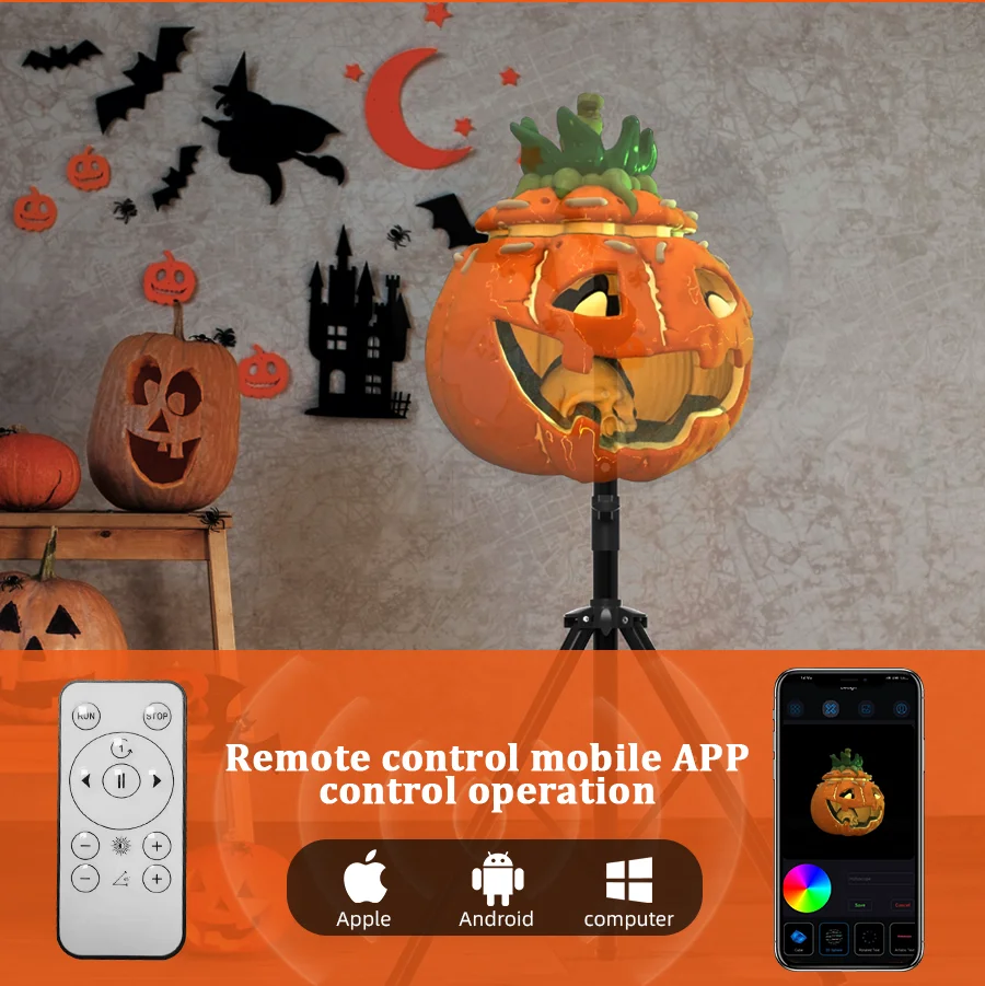 Halloween Decorative Neon LED Advertising Lights Holographic Projector Holiday Lights 3d Fan Screen Projection Pumpkin Ghosts
