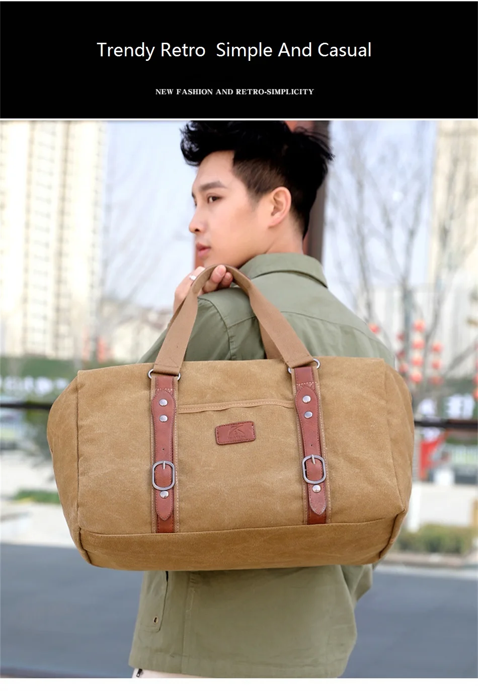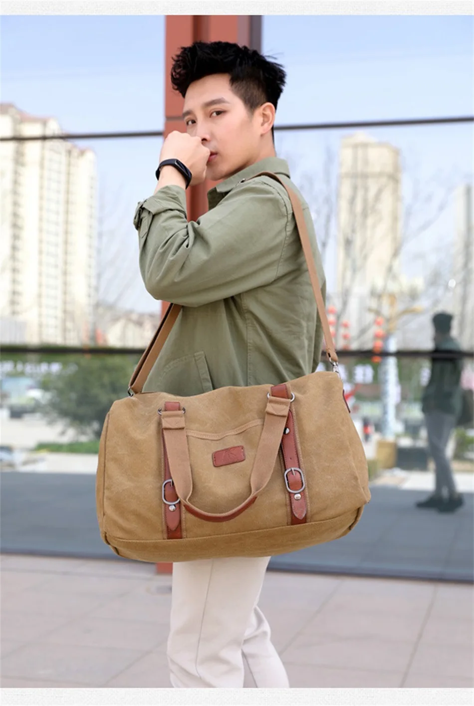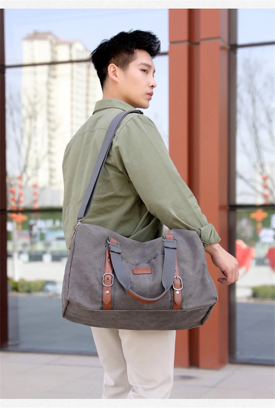 High Quality Casual Sports Mens Canvas Bags Solid Color Single Shoulder Messenger Bags Large Capacity Retro Portable Travel Bags