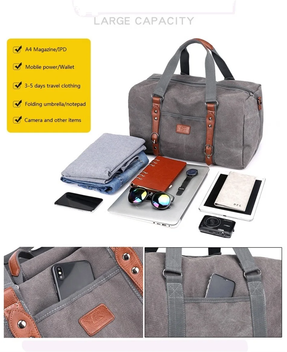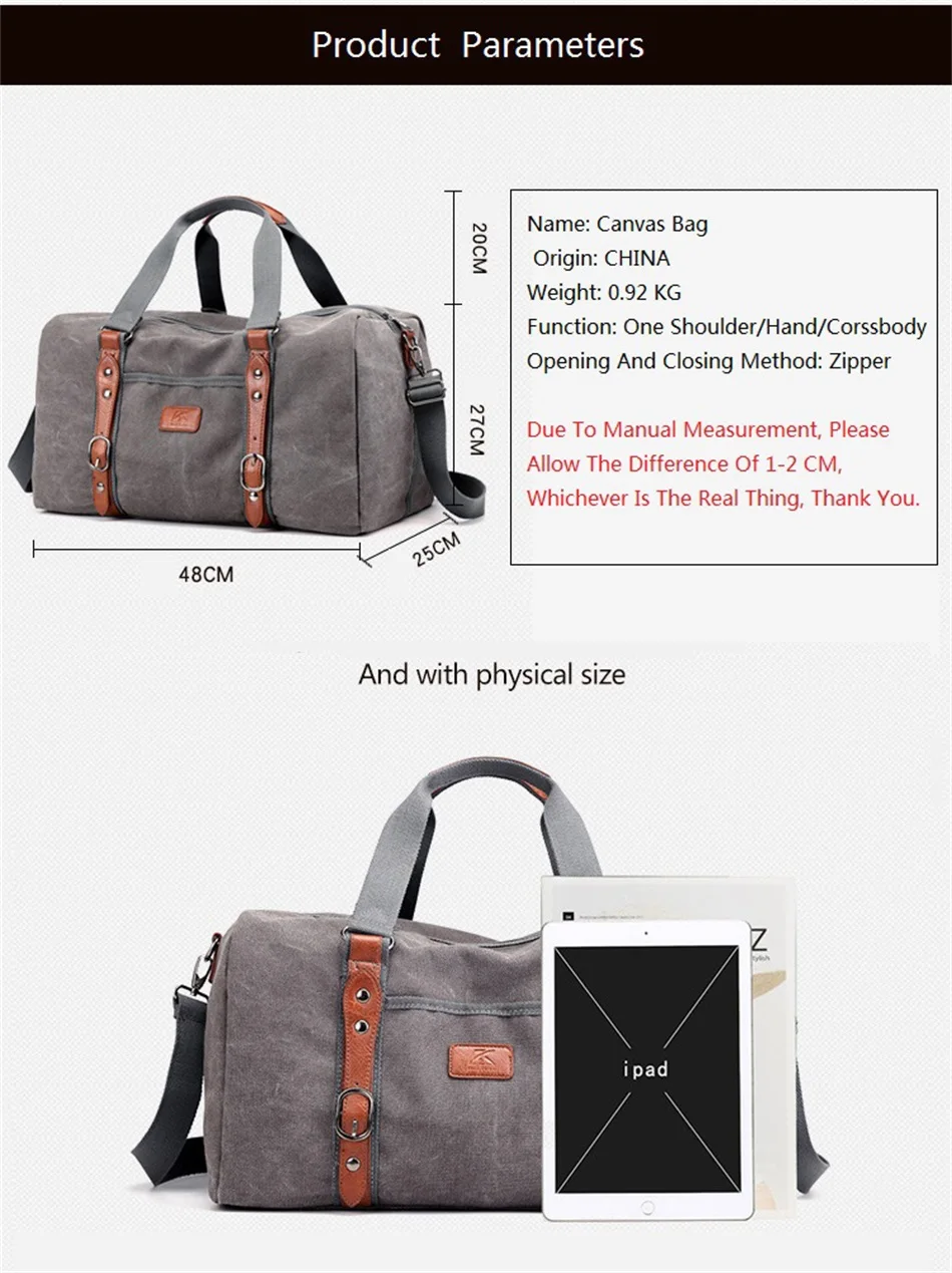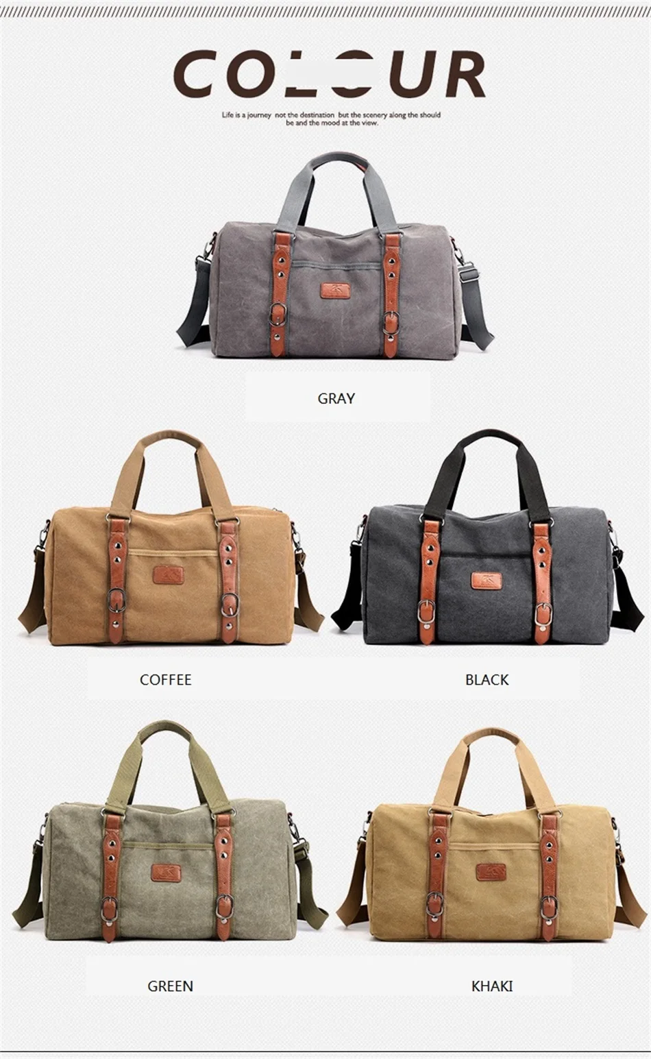 High Quality Casual Sports Mens Canvas Bags Solid Color Single Shoulder Messenger Bags Large Capacity Retro Portable Travel Bags