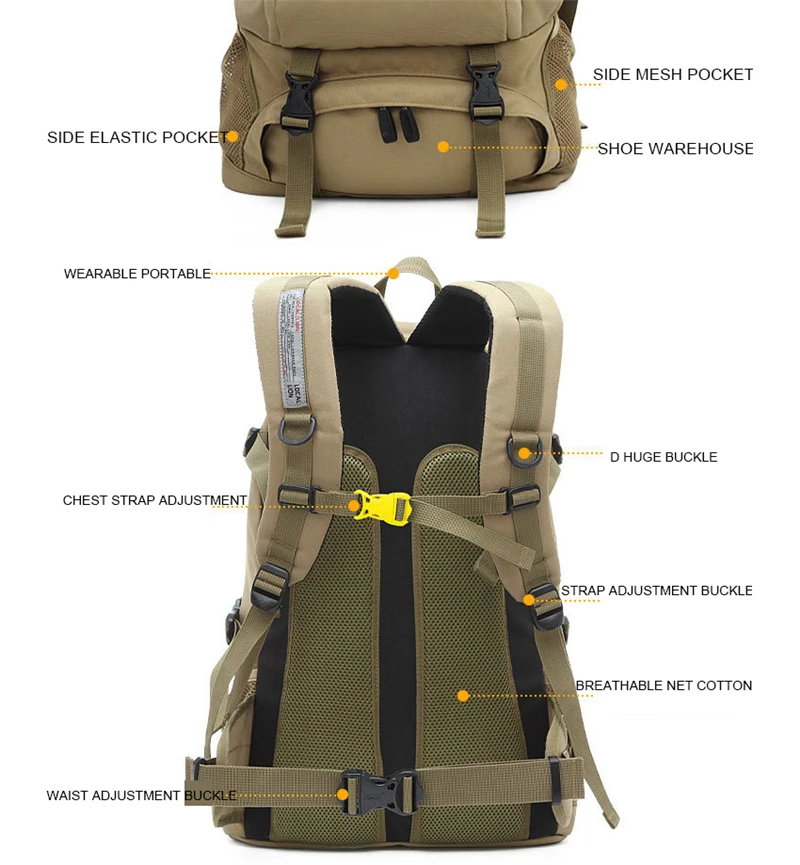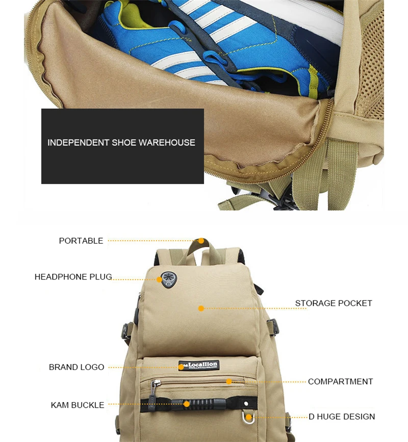 Hot Large Capacity 40 L Waterproof Tactical Backpack Men Women Military Camping Army Outdoor Tourist Bags Hiking Travel Backpack