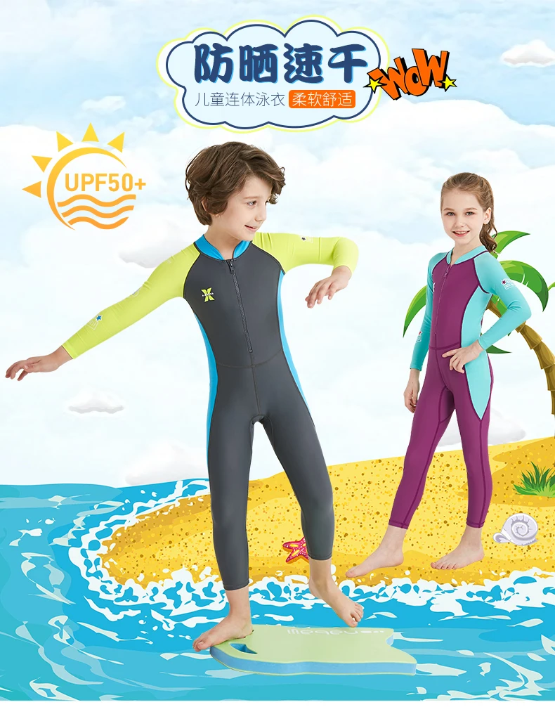 Kids Full Body Swimsuit for Girls Boys Rash Guard Surfing Thin Quick-drying Long-sleeved Sun Protection One-piece Swimming Suit
