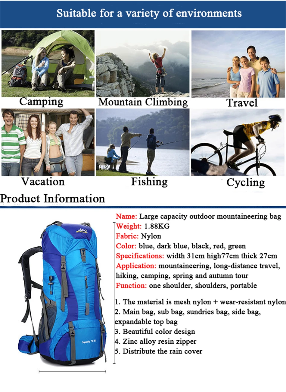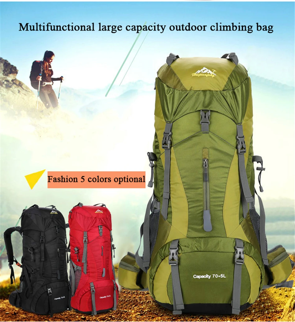 Large Capacity 75L Outdoor Mountaineering Backpack Men Women Nylon Waterproof Sports Camping Hiking Bags Sports Travel Backpacks