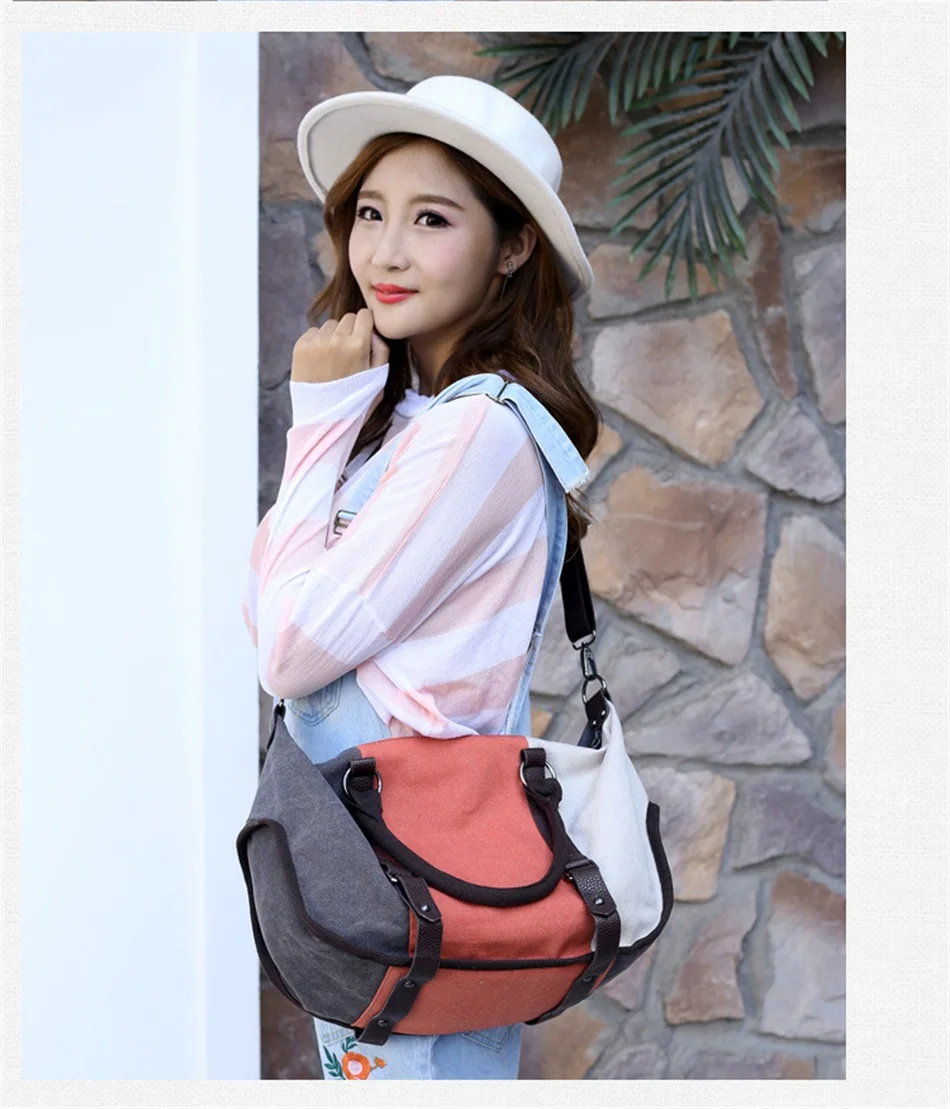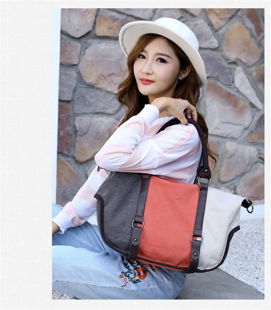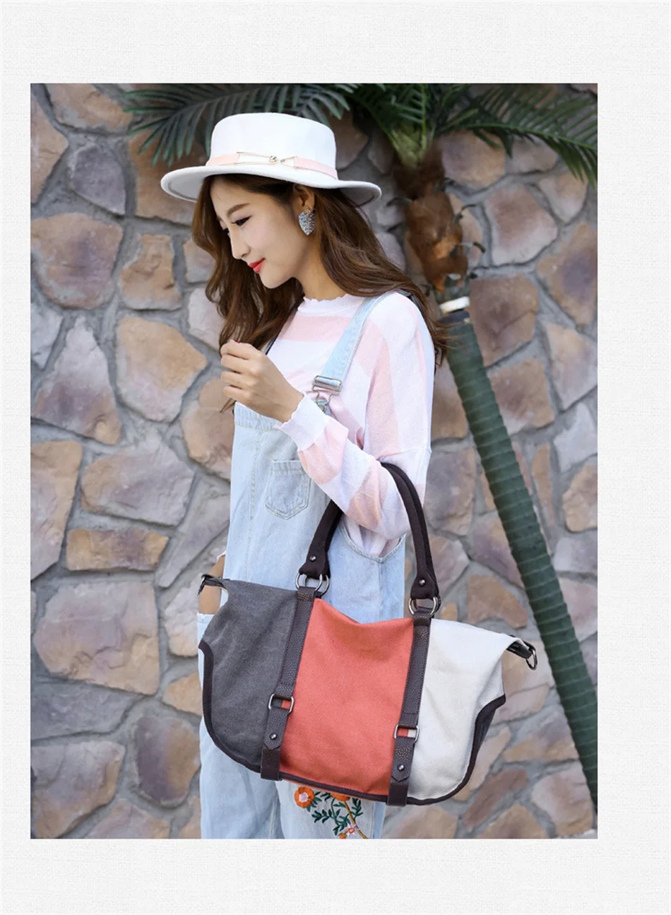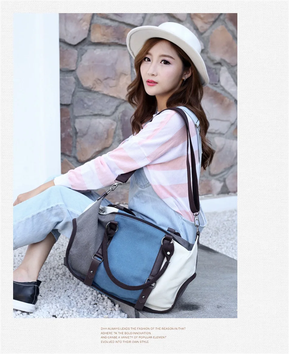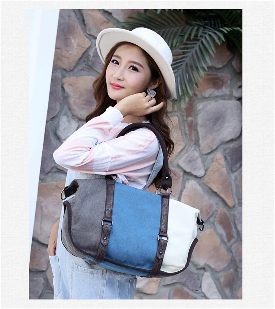Large Capacity Messenger Bags European and AmericanStyle Travel HandBag Personality Fashion Stitching Rainbow Trendy Canvas Bags