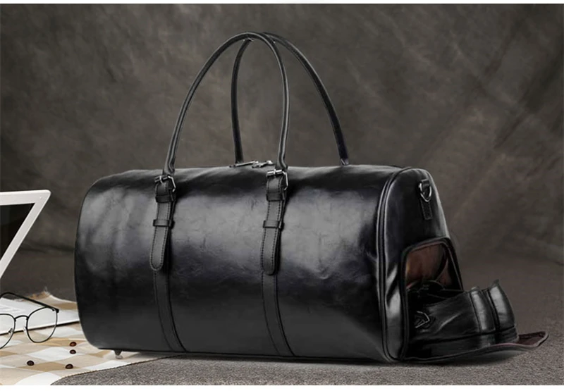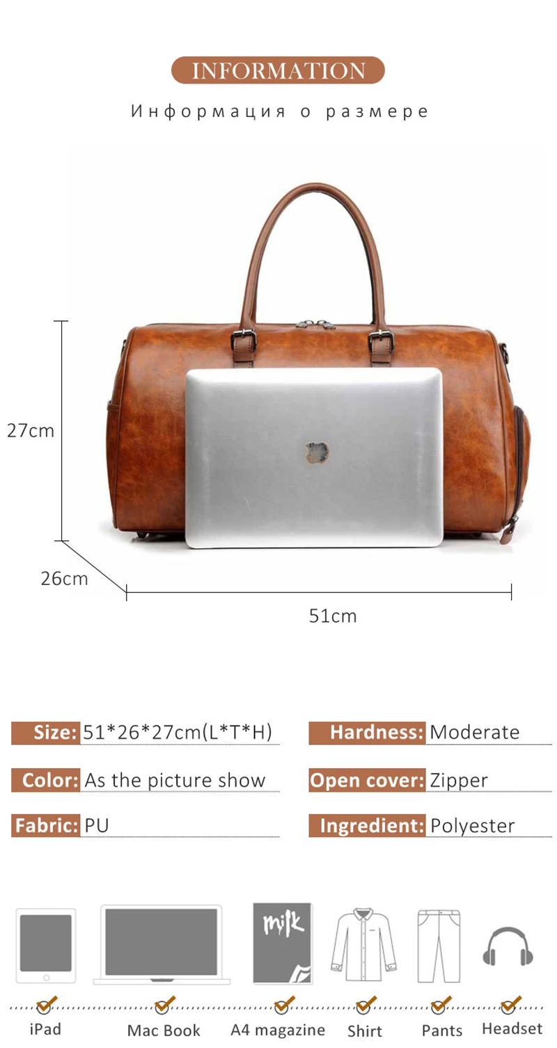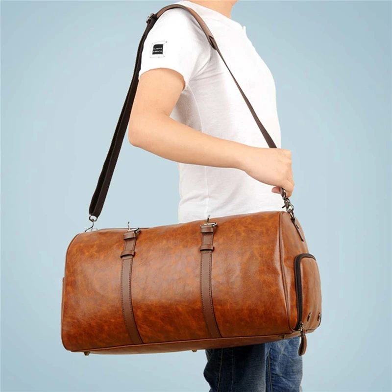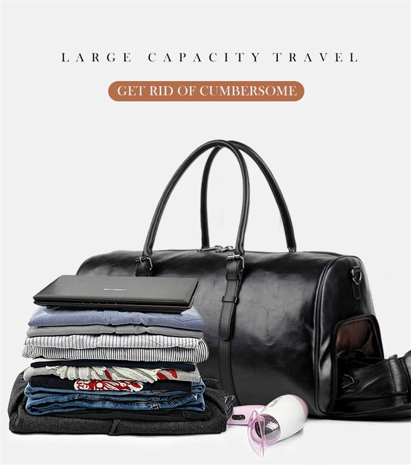 Large Capacity PU Waterproof Bag Men Women Sports Gym Duffel Bag Travel Handbag Fitness Shoulder Tourist Bags with Shoes Storage
