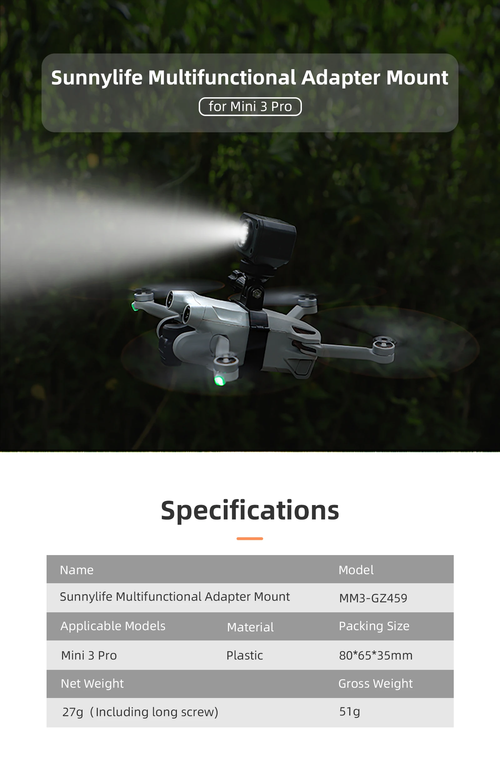 Led Light for DJI Mini 3 Pro Camera Top Bracket Gopro Sports Action Camera Adapter Mount Clamp Holder Fix Expansion Flashlight