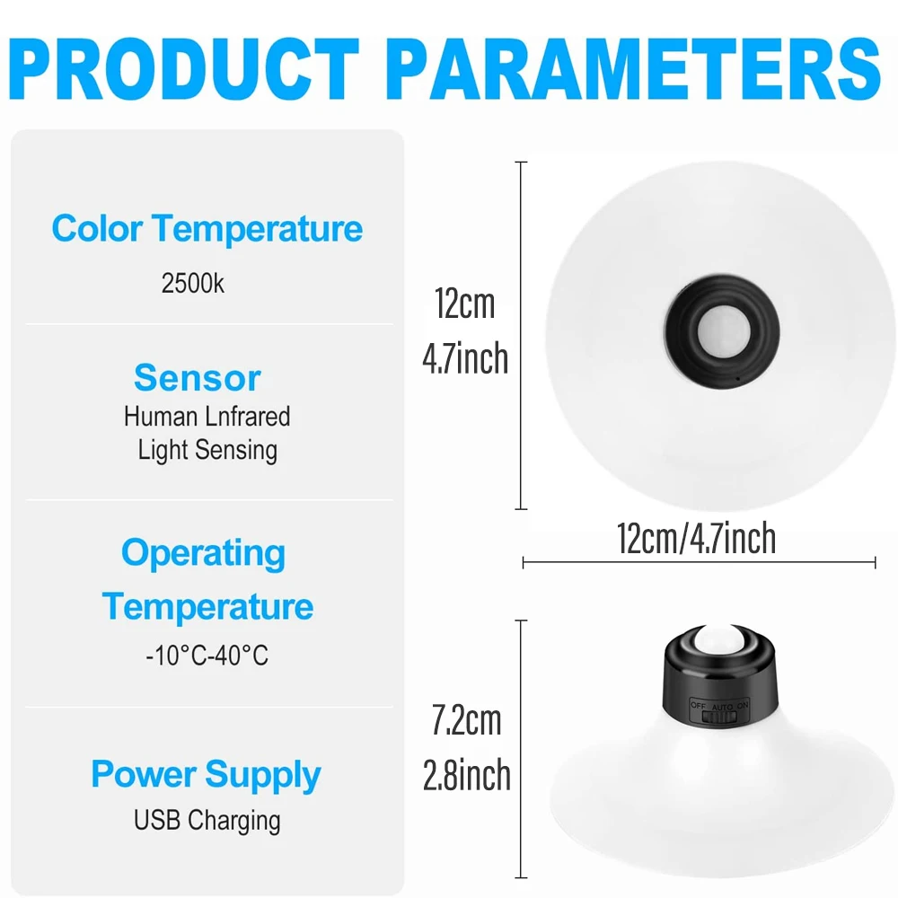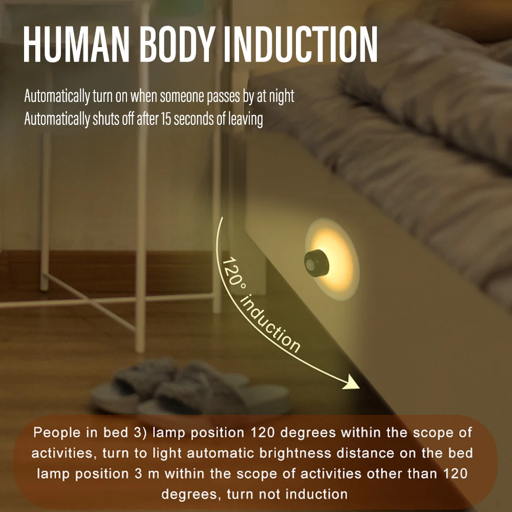 LED PIR Motion Sensor Night Light USB Rechargeable Night Lamp For Kitchen Cabinet Wardrobe Lamp Staircase Wireless Closet Light