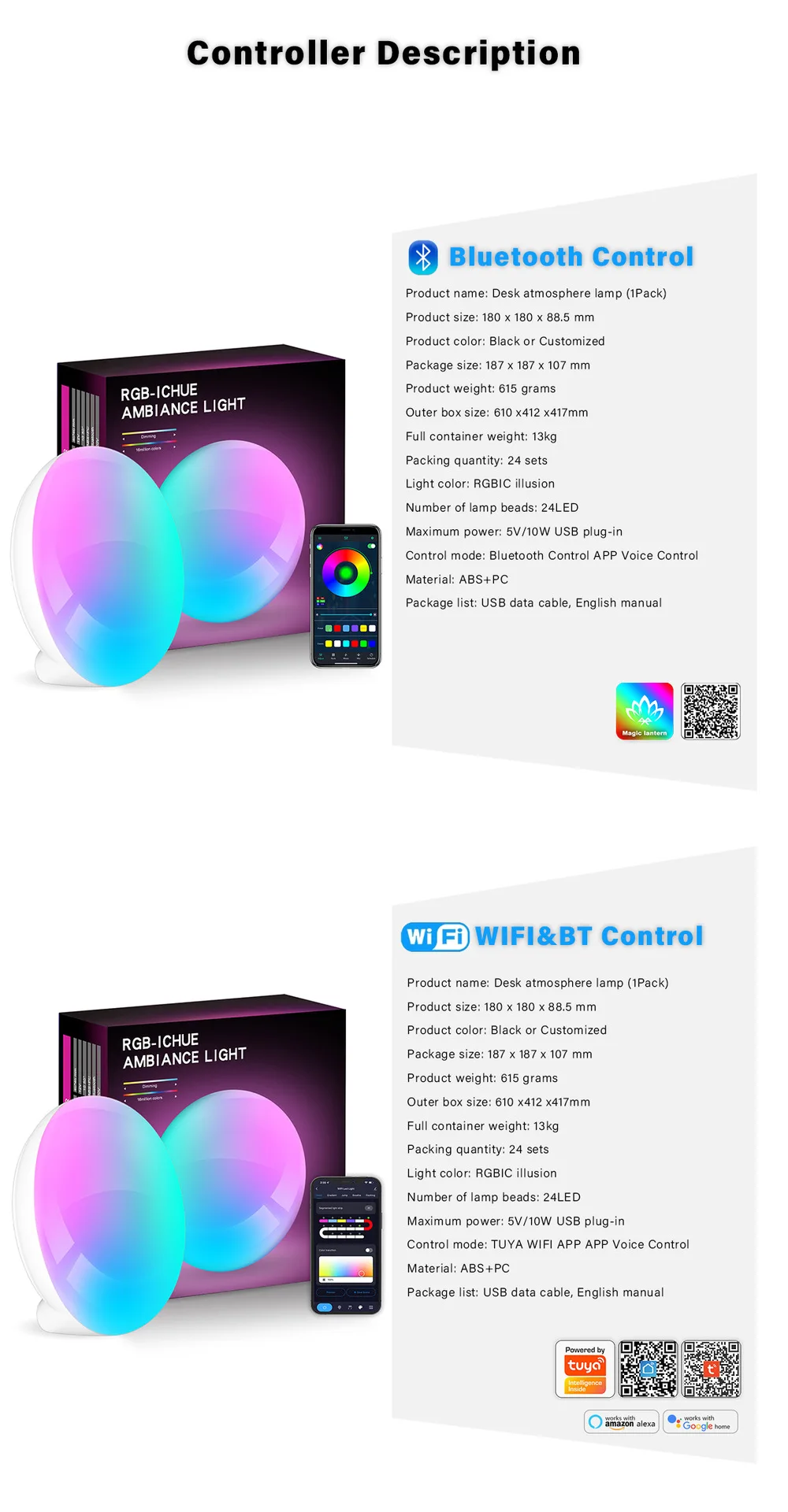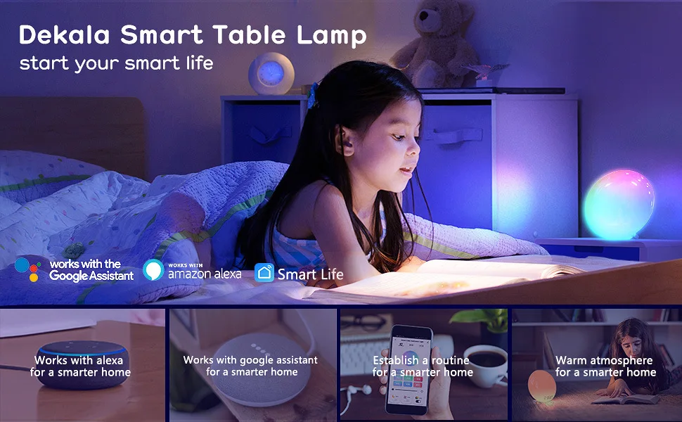 LED Smart Wake-up Light APP Control Works with Google Assistant Aleax Lamp for Bedroom Bedside Game Desktop Ambient Night Light
