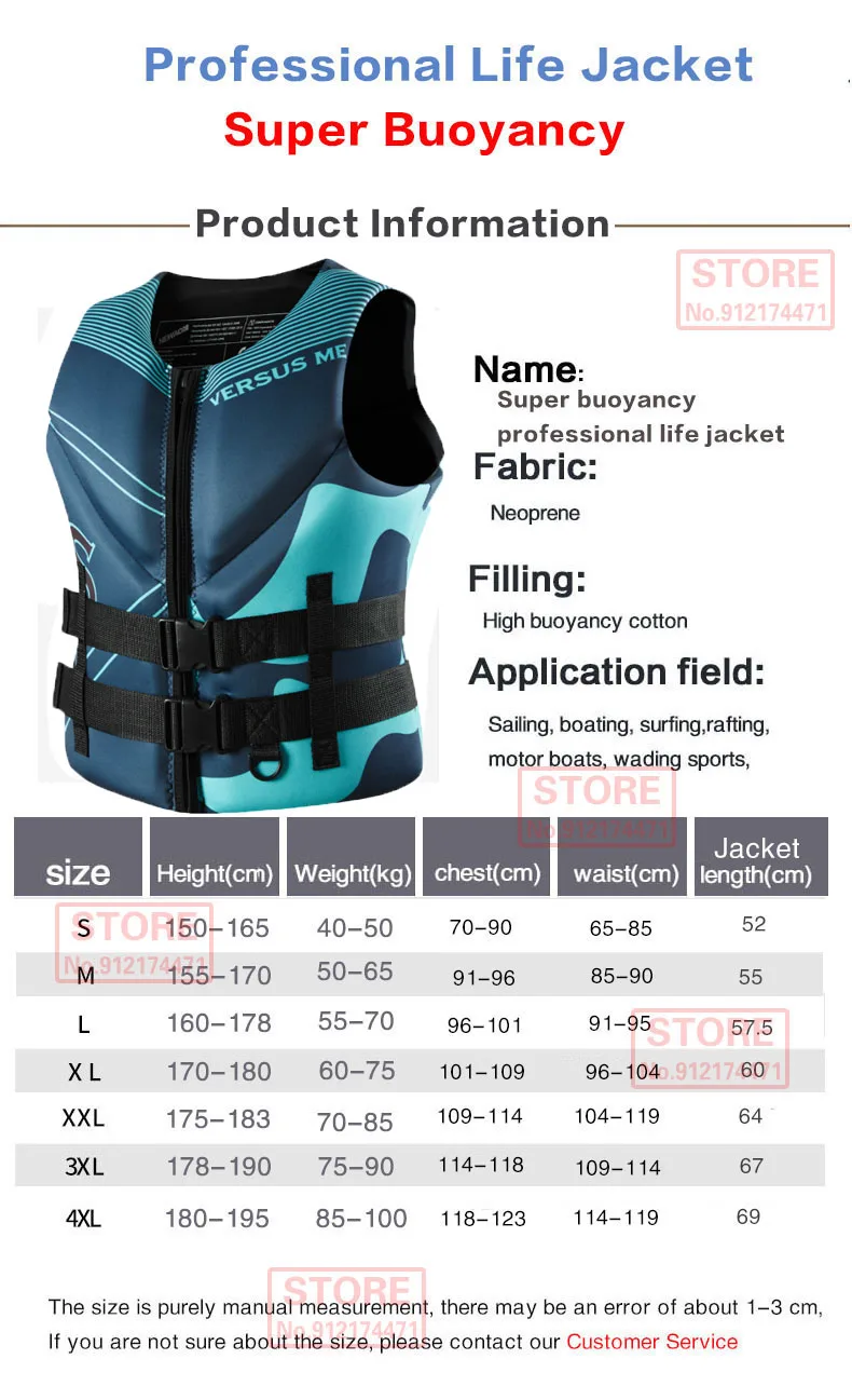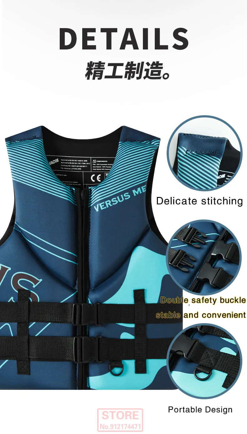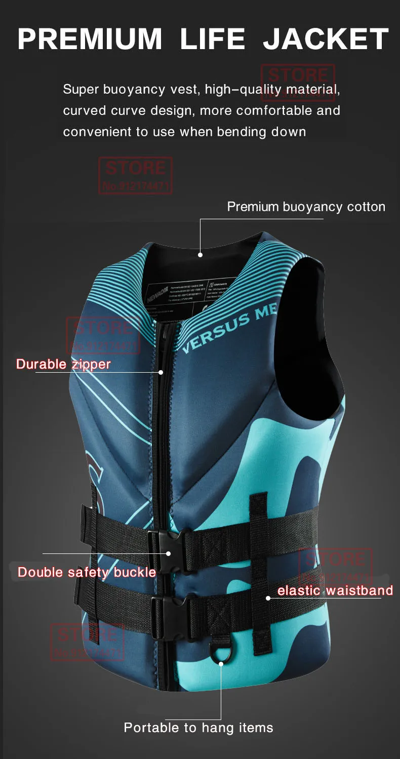 Life Jacket Super Buoyancy Neoprene Life Jacket for Adult Surf Raft Kayak Fishing Jet Ski Water Sport Swimming Rescue Life Vest