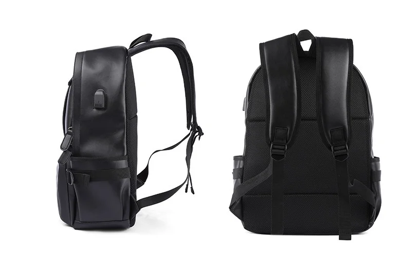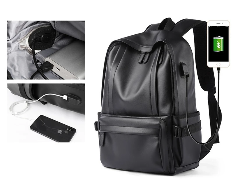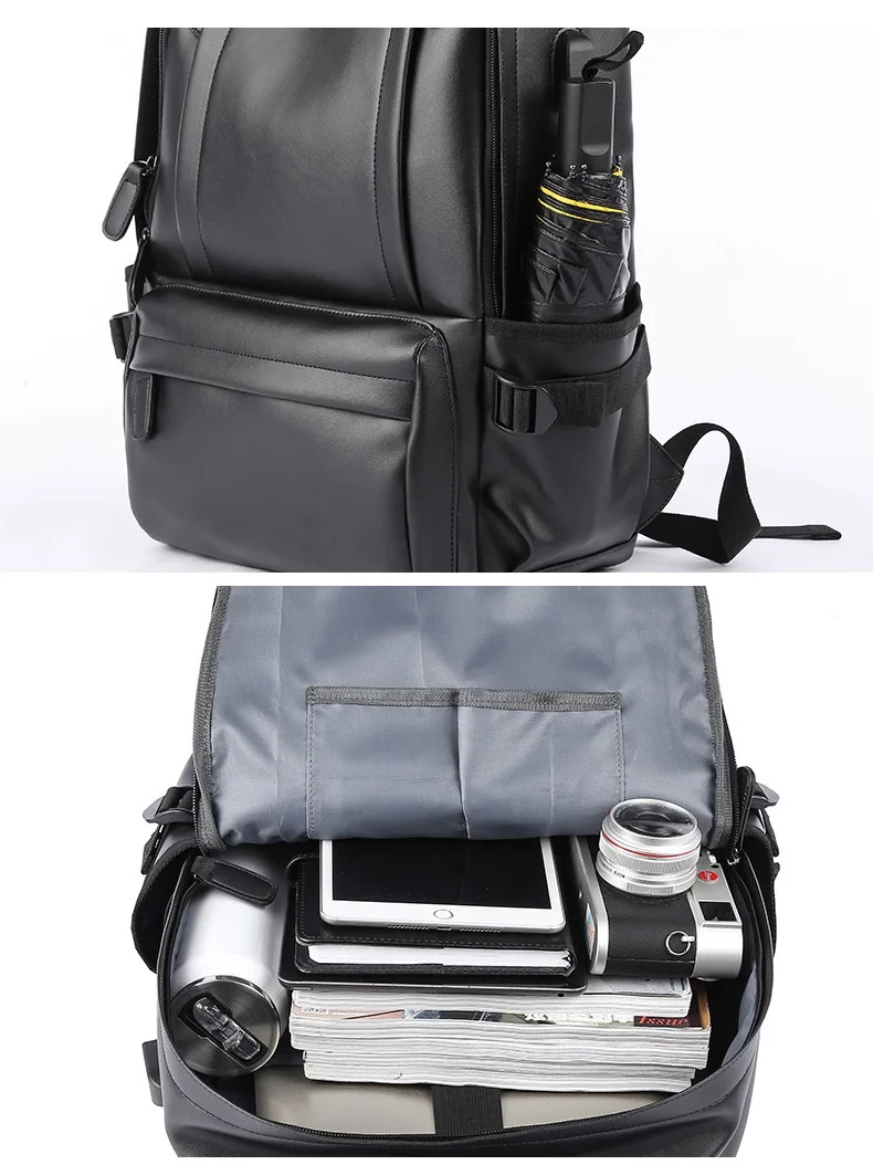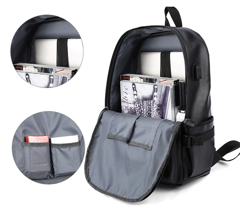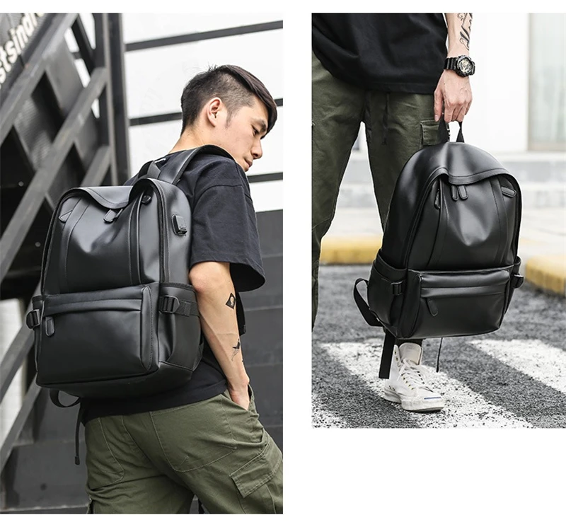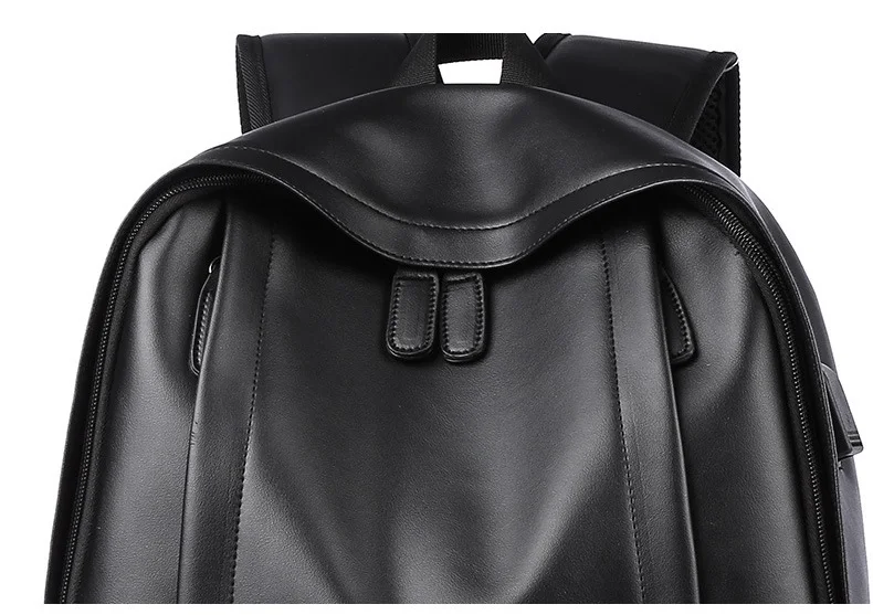 Man Black Laptop Backpack PU Waterproof Fashion Boys Schoolbags Sports Large Capacity USB Charging Functional School Travel Bags