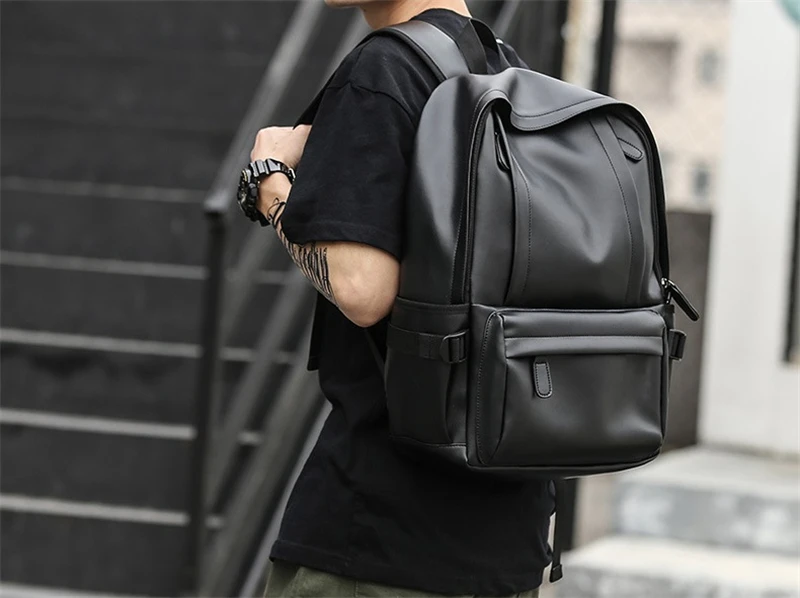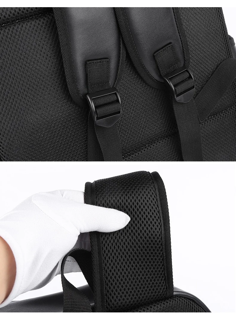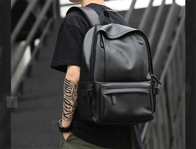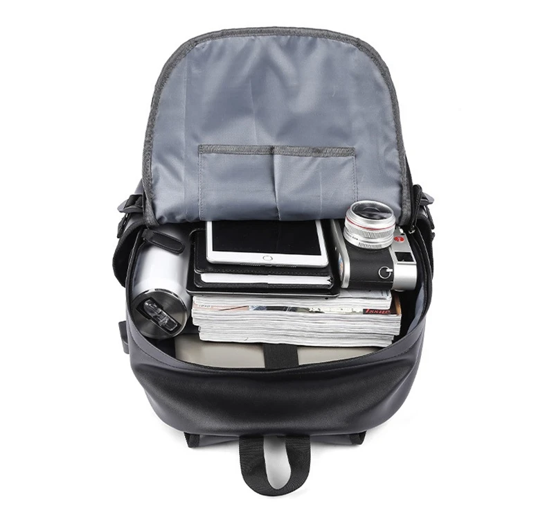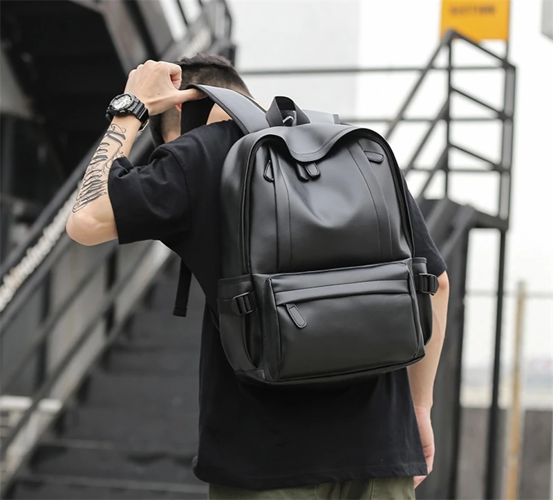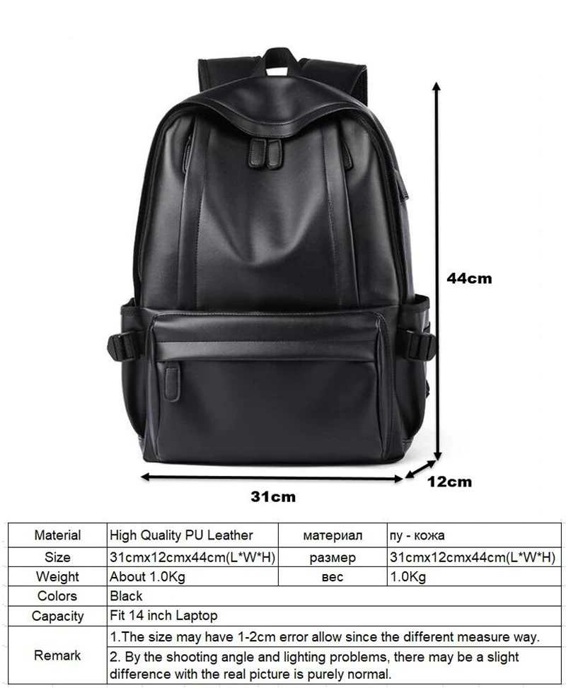 Man Black Laptop Backpack PU Waterproof Fashion Boys Schoolbags Sports Large Capacity USB Charging Functional School Travel Bags