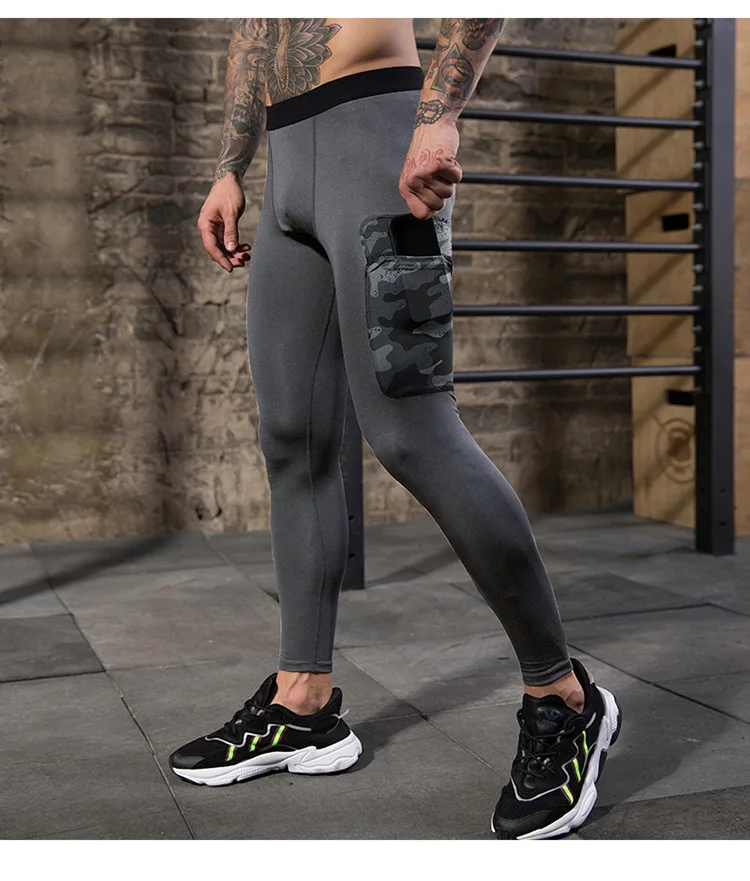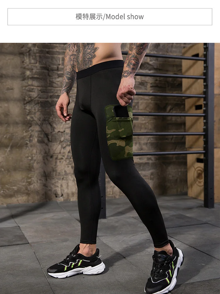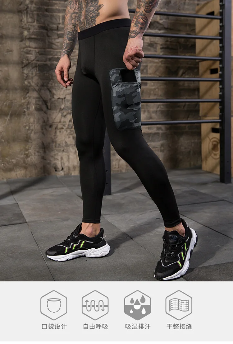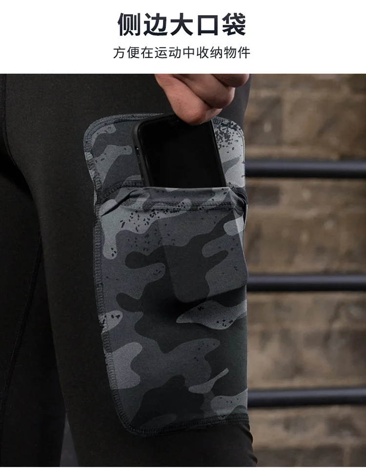 Men fitness pants camouflage pocket training running quick-drying high-elastic sports and leisure tight trousers sweat pants