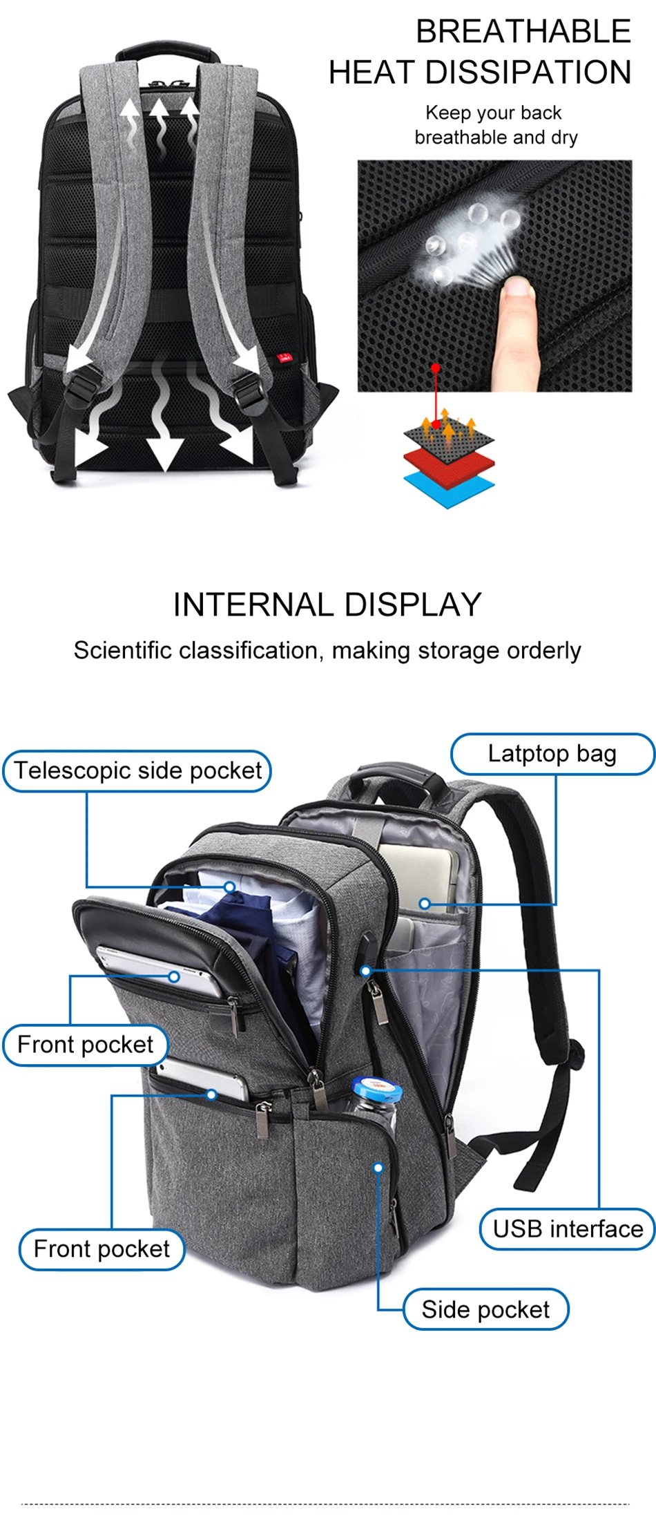Men Women Business Backpack Fashion Laptop Students Notebook Travel Backpacks Multifunctional Large Waterproof USB Charging Bags