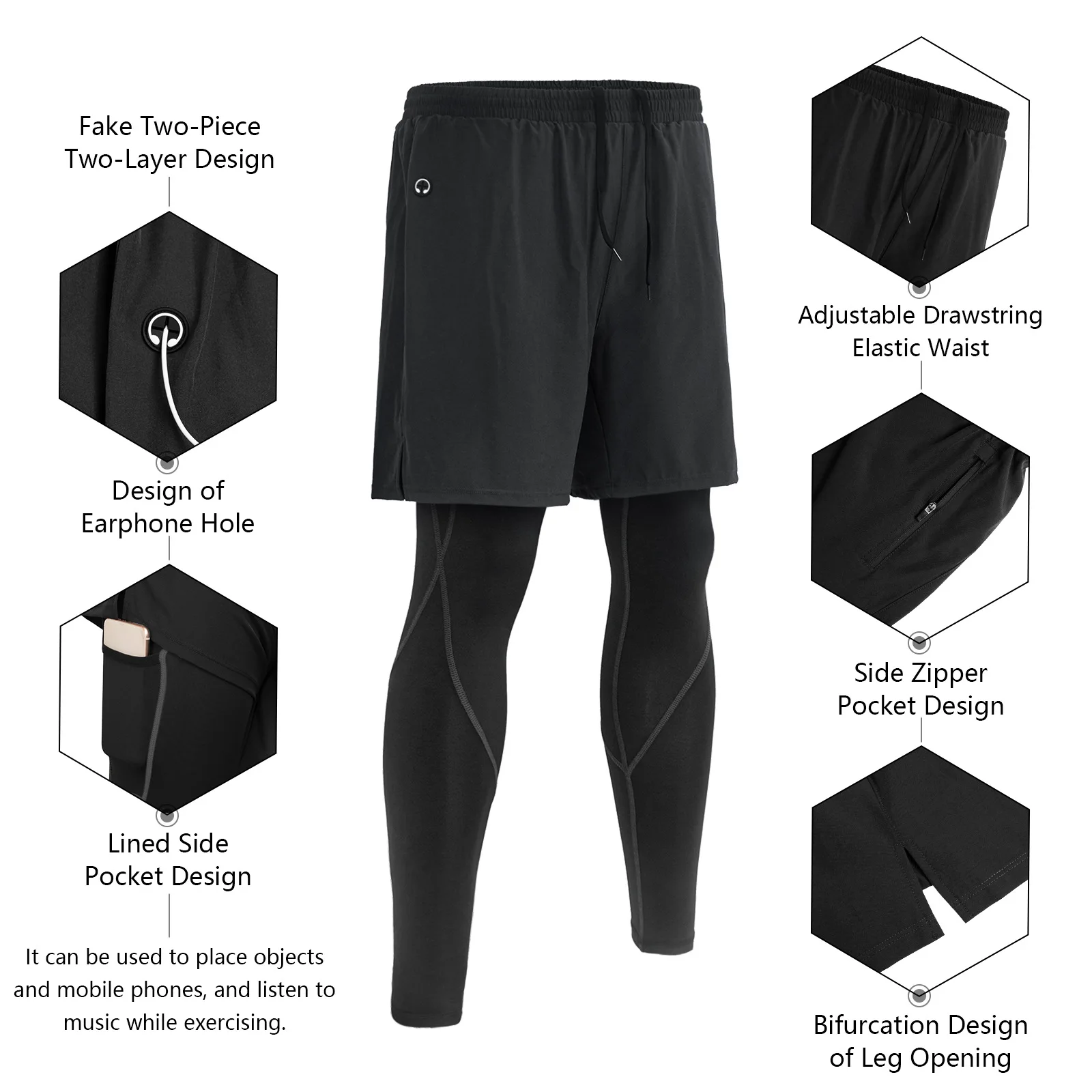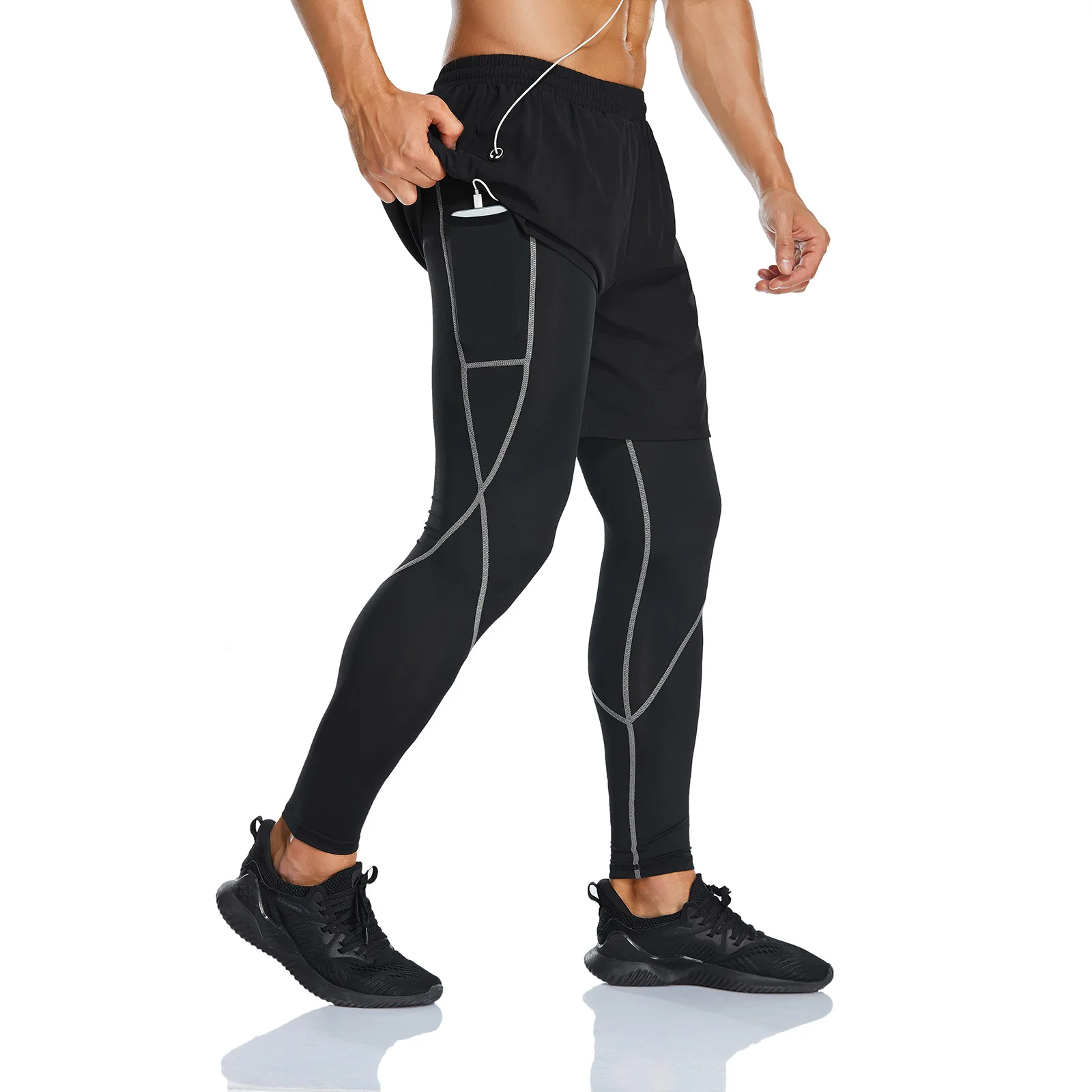 Men zipper side pocket earphone line hole sports trousers jogging pants men sweat pants men sports wear leggings