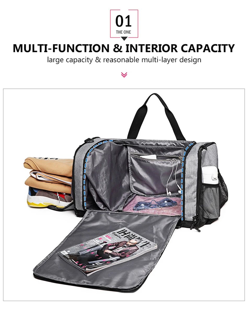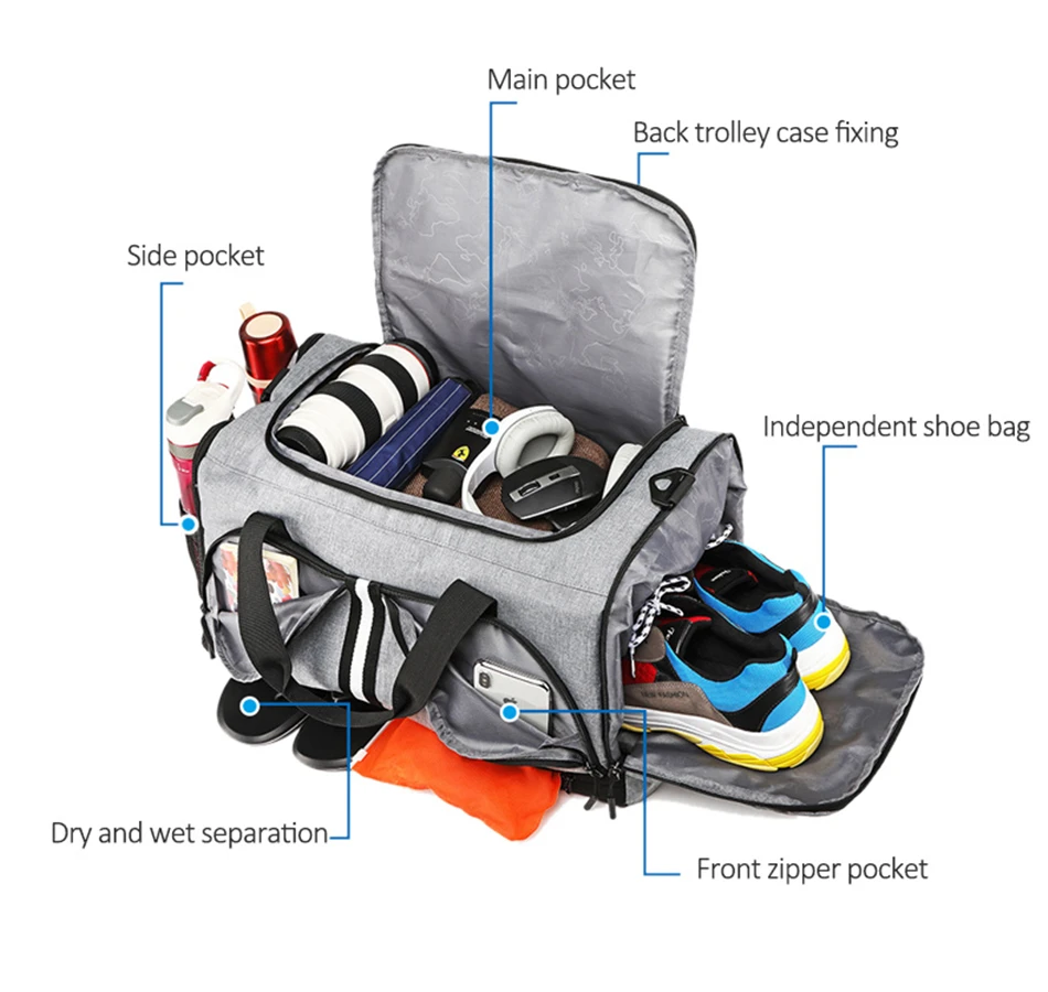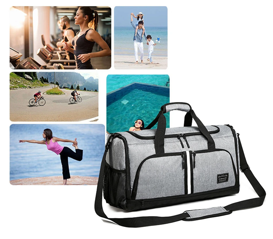 Men’s Canvas Travel Gym Bags Fitness Yoga Training Dry Wet Duffle Luggage Bag Shoes Pocket Waterproof Shoulder Handbag Men Women