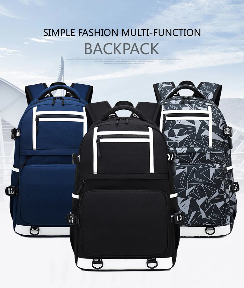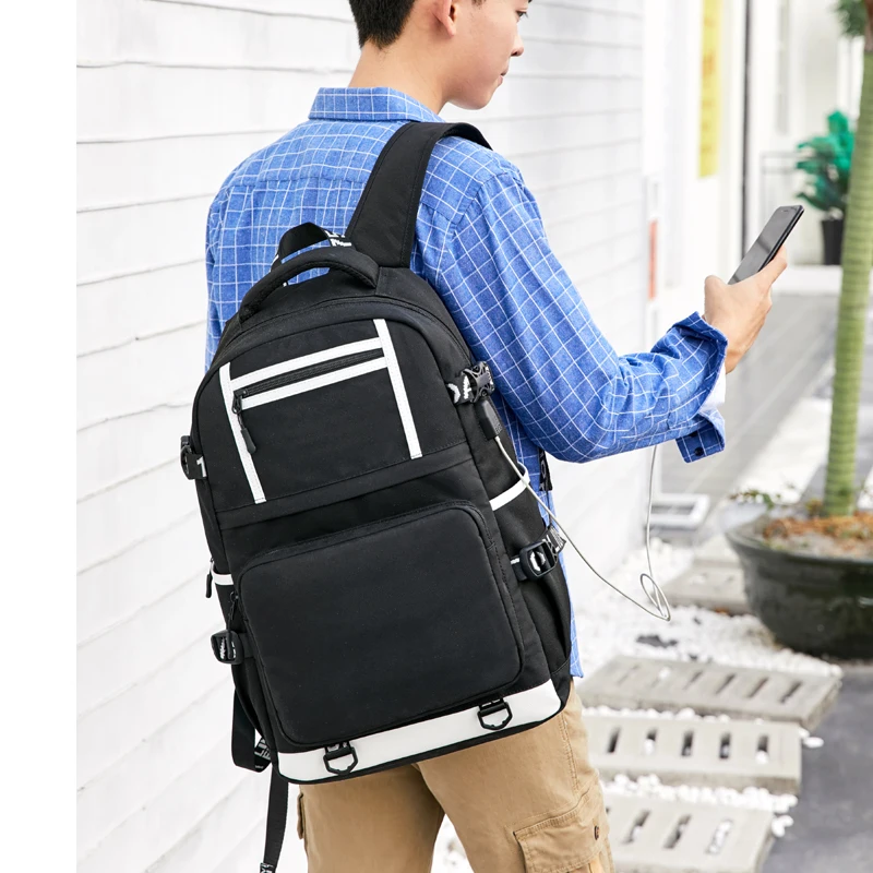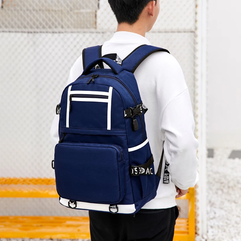 Men’s USB Charging Backpack Anti-theft Zip Pocket Oxford Waterproof Travel Backpacks Large Capacity Teenager Students School Bag