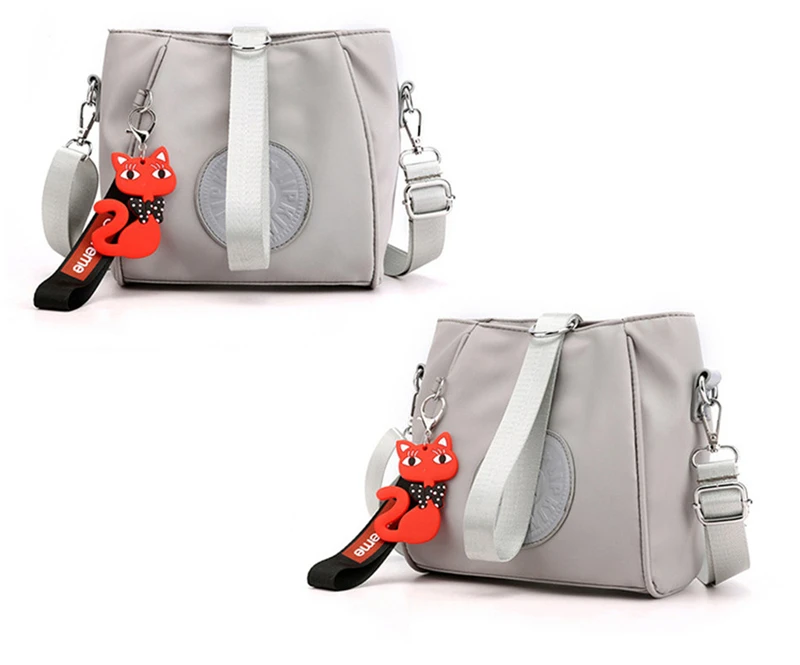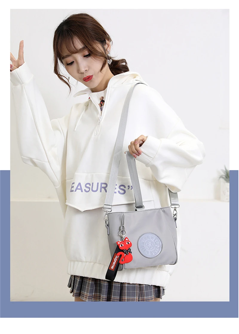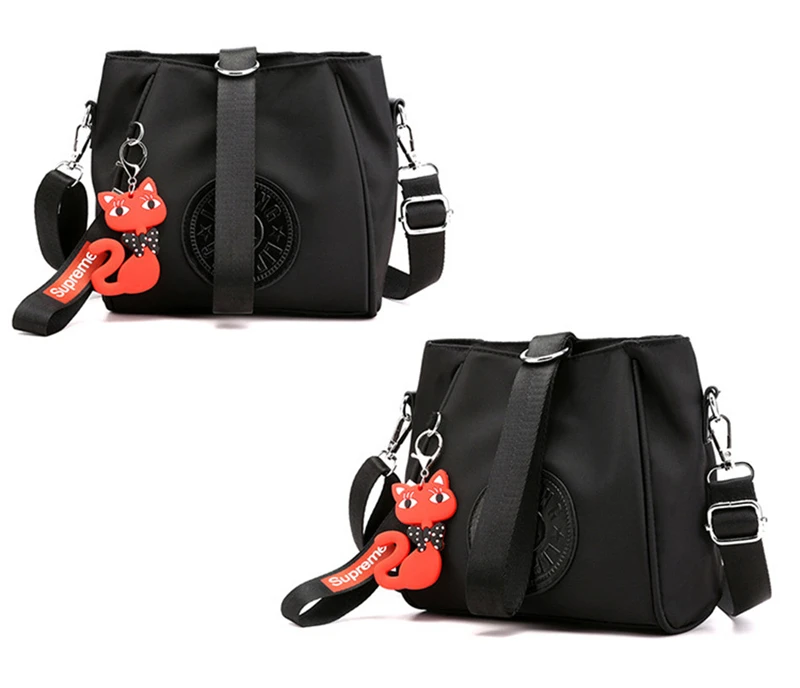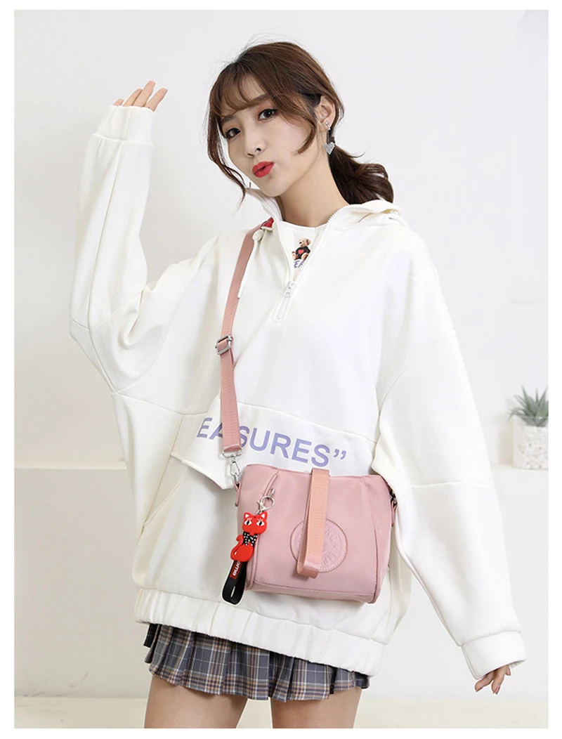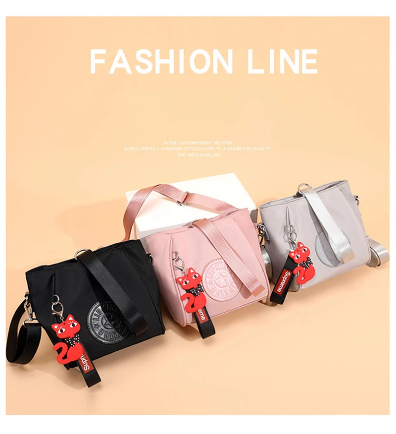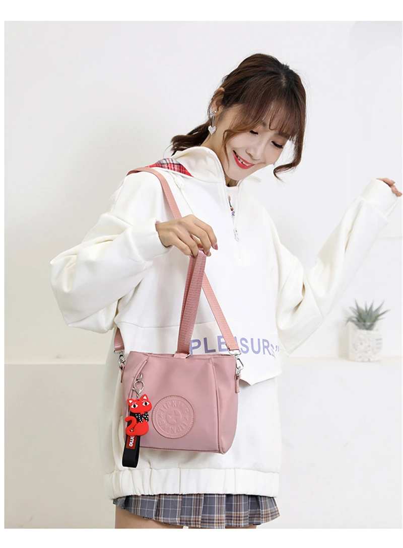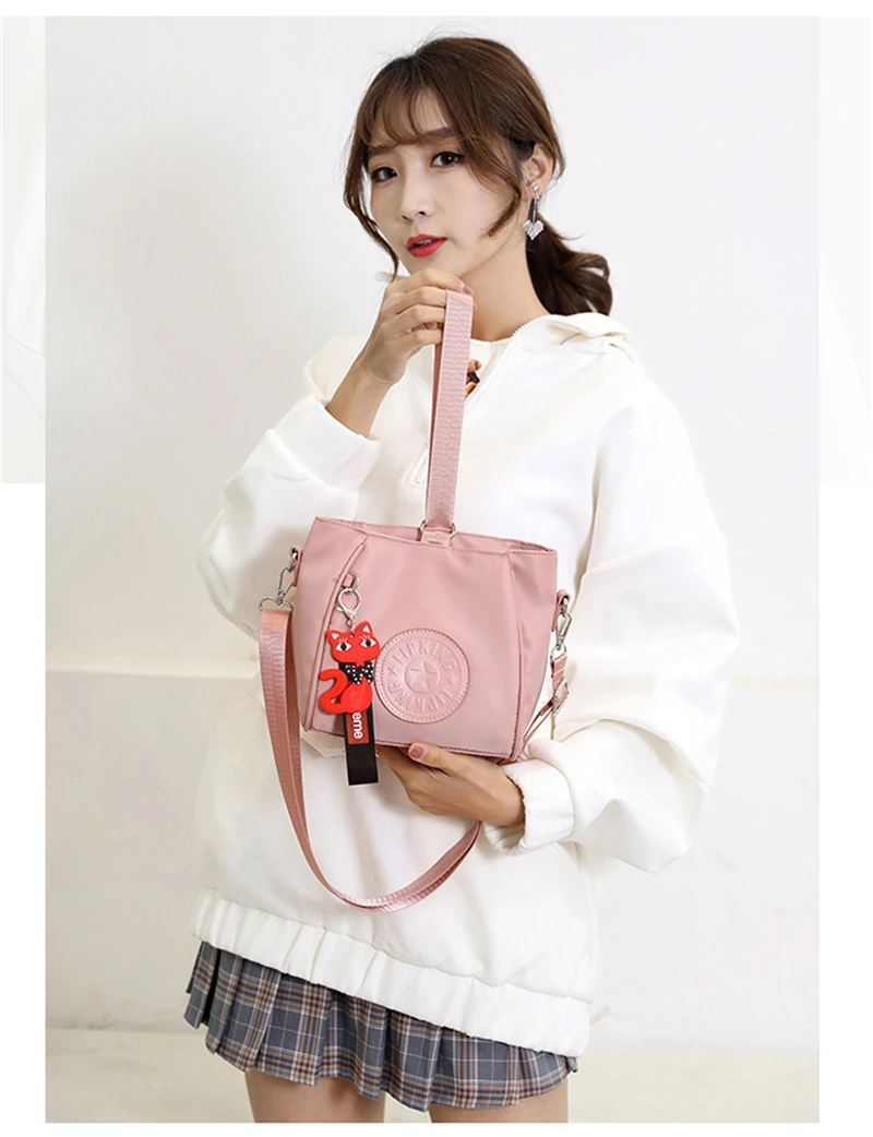 Mini Shoulder Bag Women Nylon Fox Pendant Street Soft Phone Purse Fashion Tote Handbags Travel Shopping Crossbody Messenger Bags
