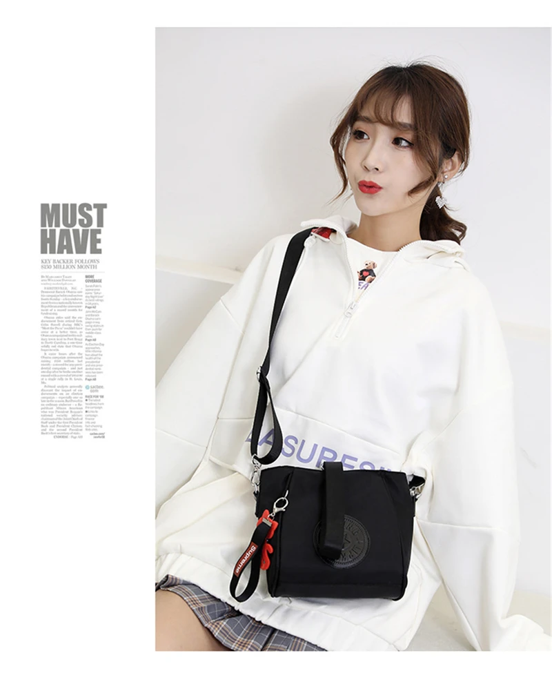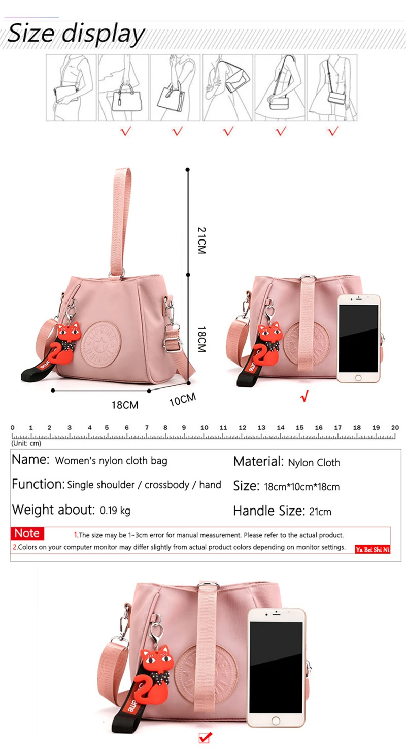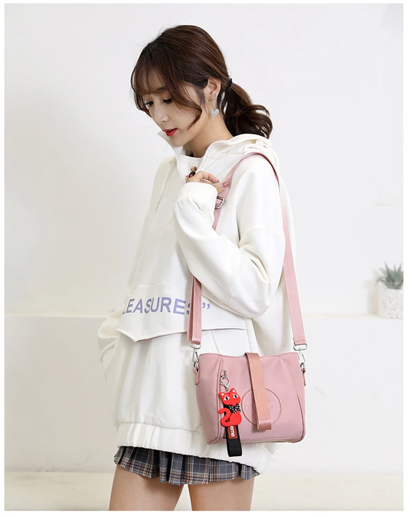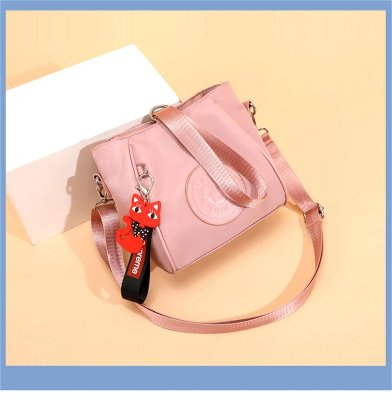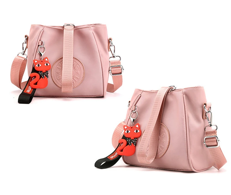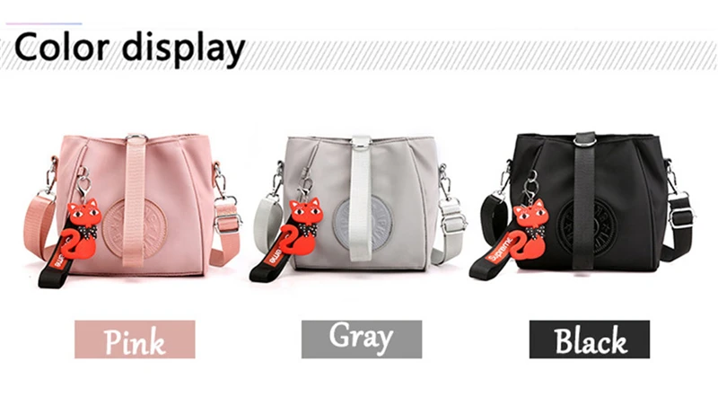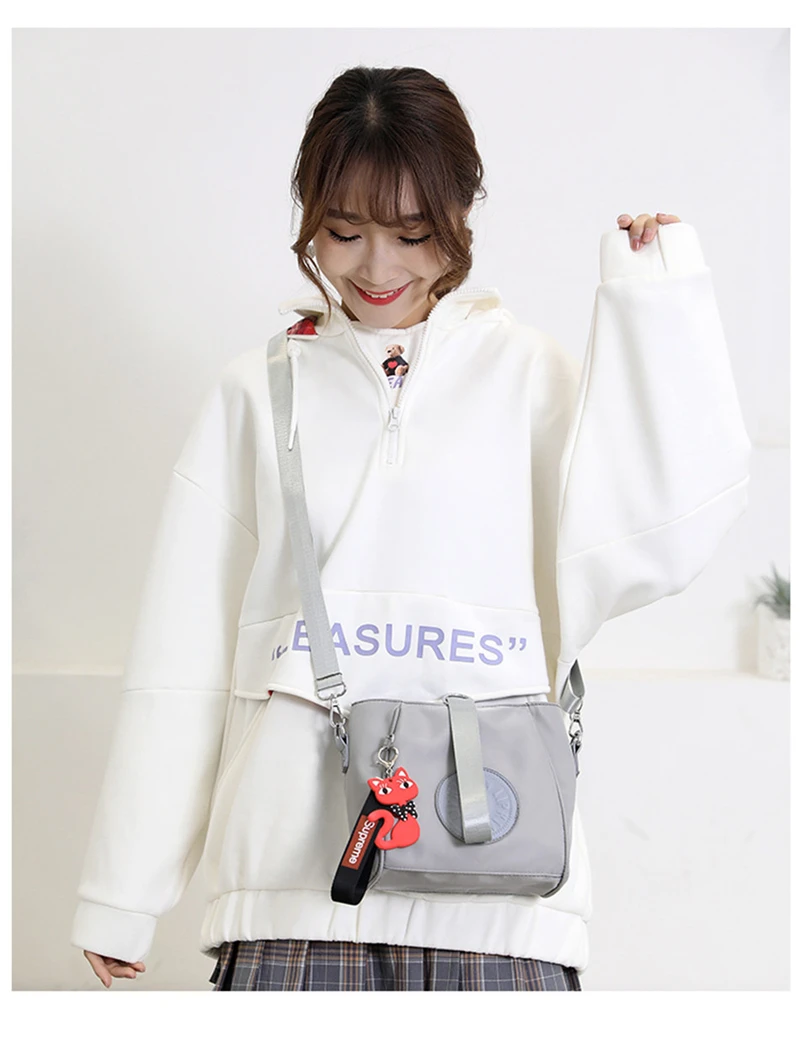 Mini Shoulder Bag Women Nylon Fox Pendant Street Soft Phone Purse Fashion Tote Handbags Travel Shopping Crossbody Messenger Bags