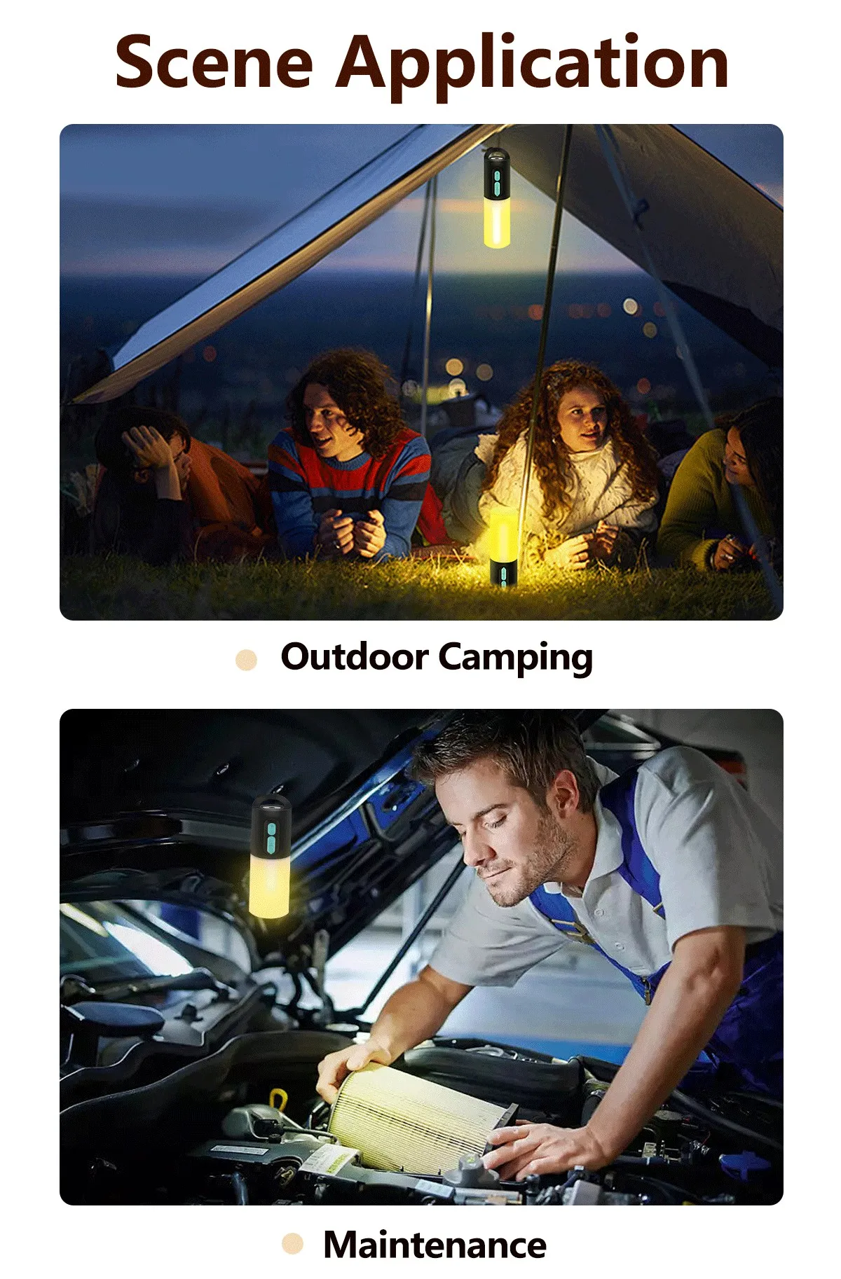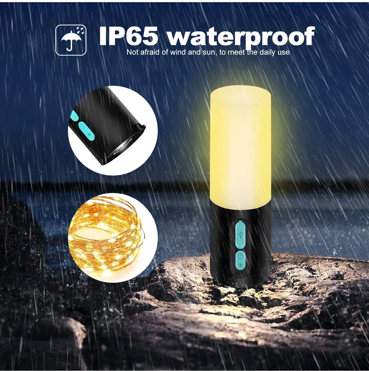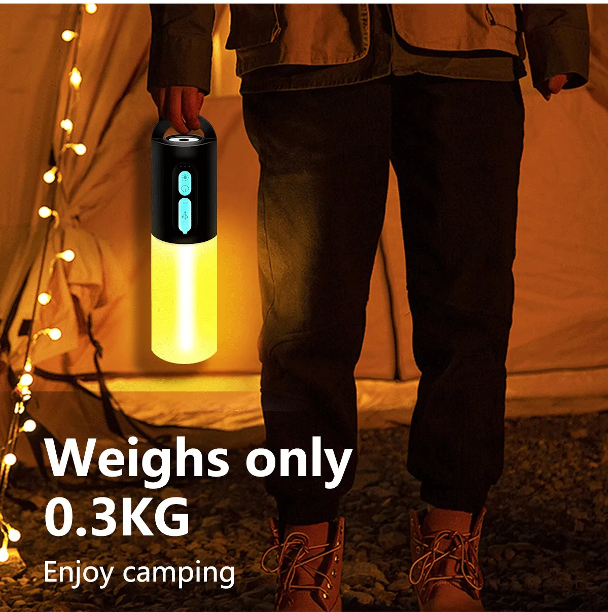 Multifunctional Camping String Lights Lantern Portable Rechargeable Flashlight with 4000mAh Charger for Emergency Camping Hiking