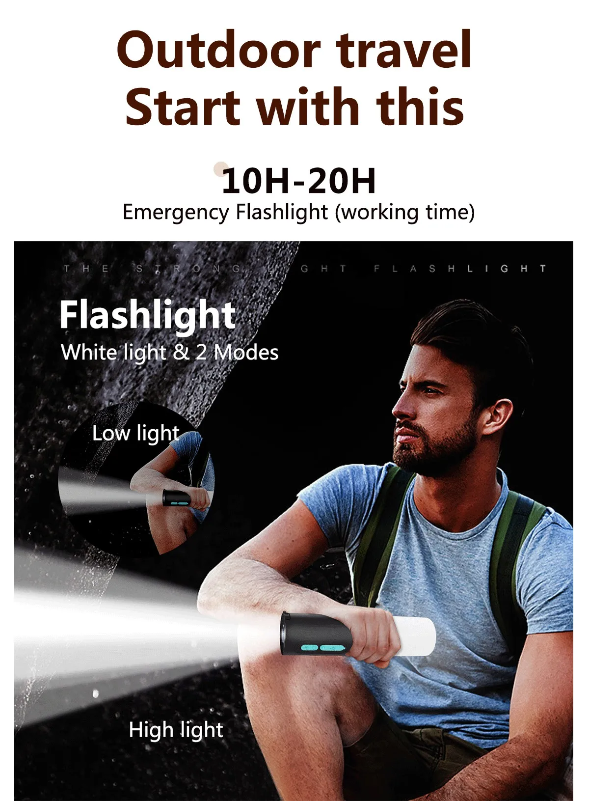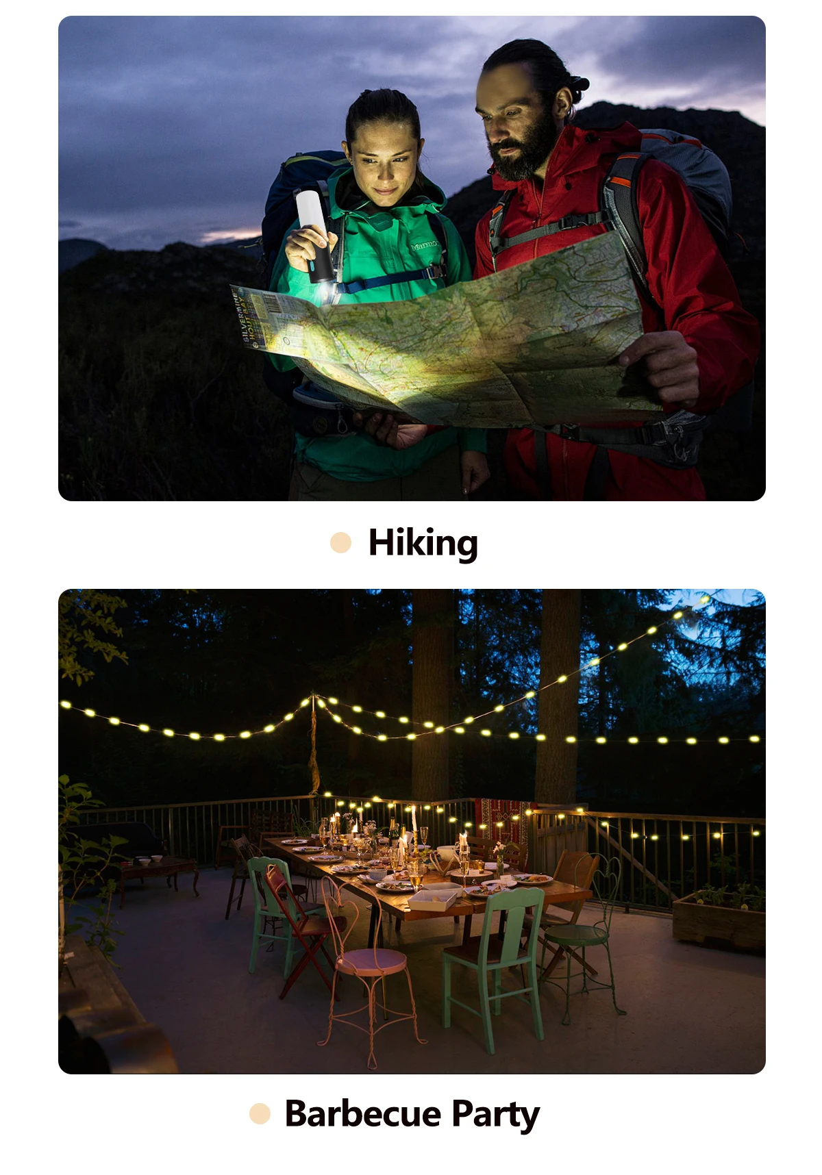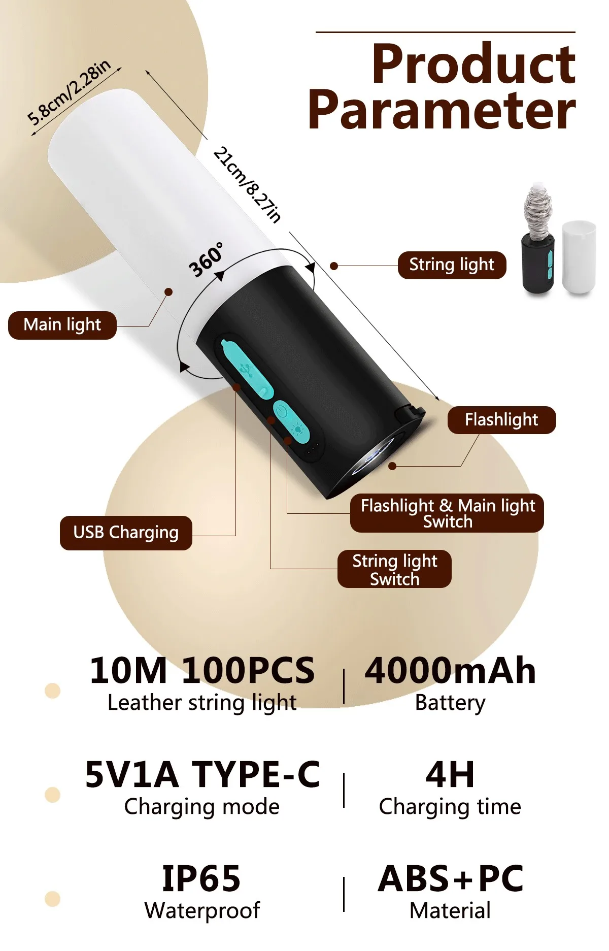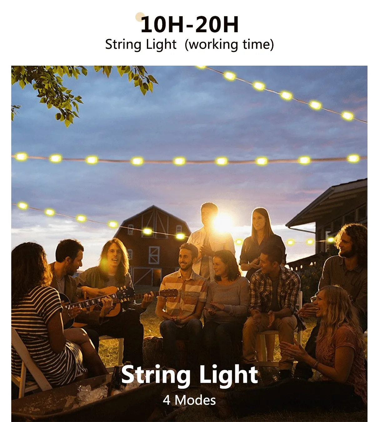 Multifunctional Camping String Lights Lantern Portable Rechargeable Flashlight with 4000mAh Charger for Emergency Camping Hiking