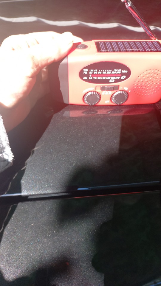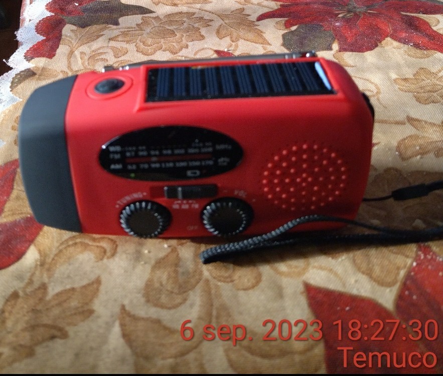 Ha tardado muy poquito tiempo, es pequeñita y muy mona, la estoy cargando con el sol, porque acaba de llegar, a ver que tal va y cuantas emisoras coge. Gracias.