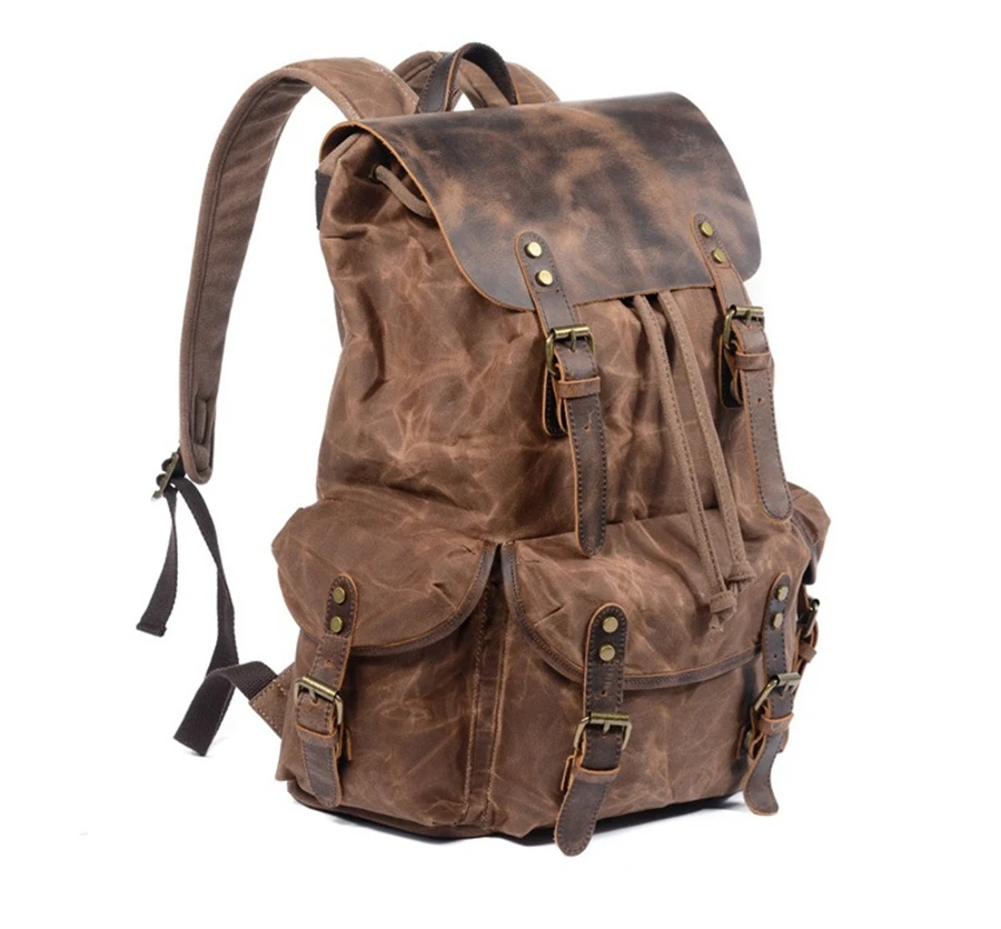 New 2020 Men’s Vintage School Bags Travel Sports Camping Hiking Rucksack Quality Waxed Canvas Leather Casual Men Laptop Backpack