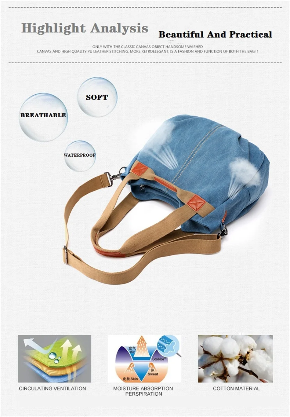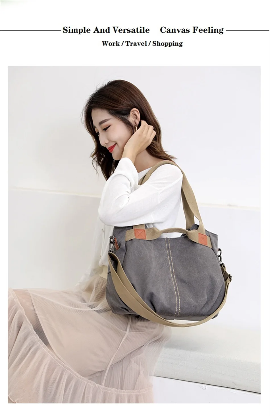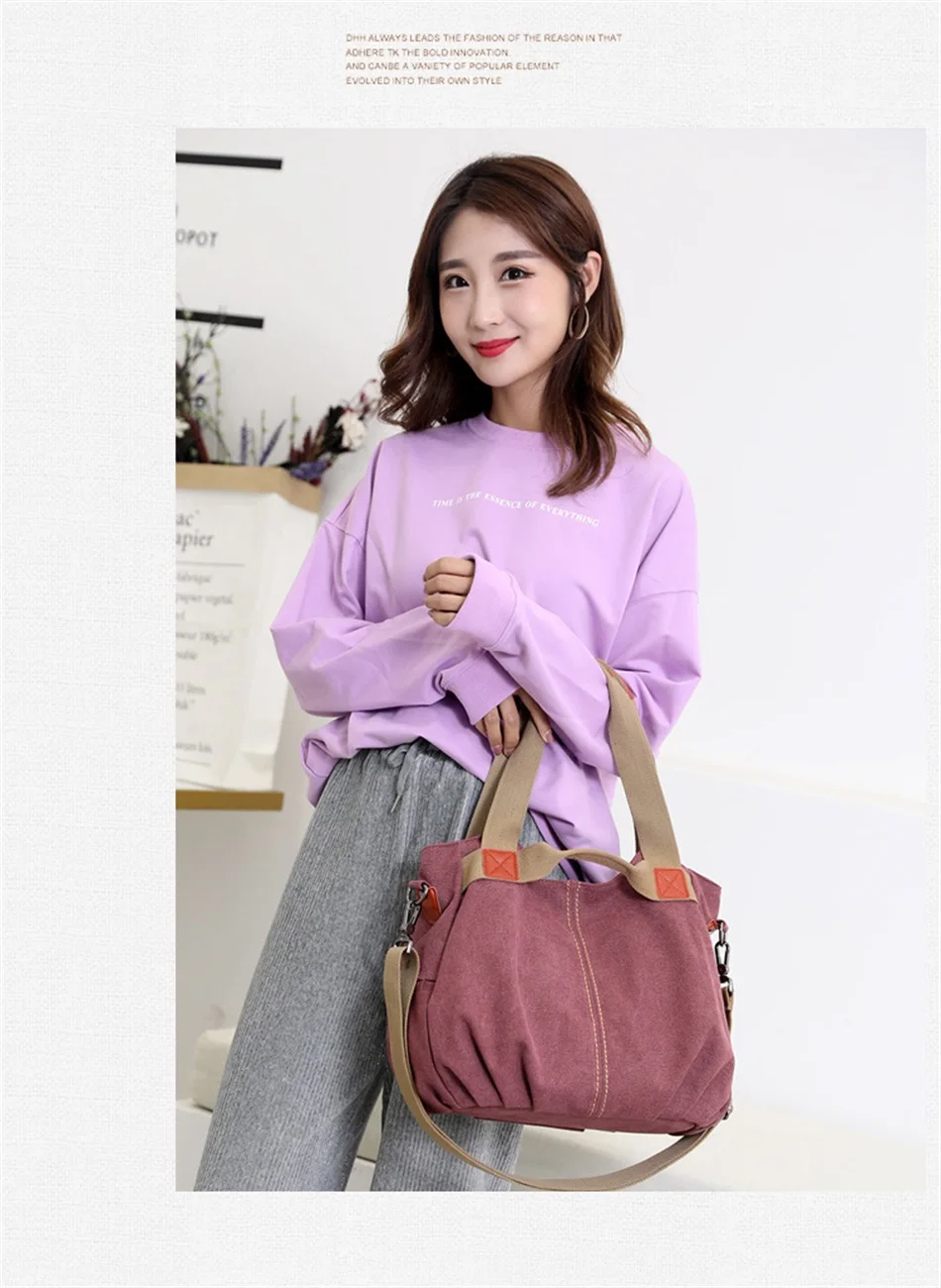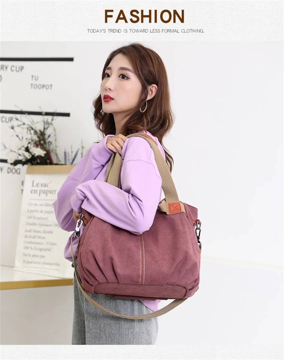New Europe and America Shoulder Soft And Wear Resistant Canvas Handbags Crossbody Canvas Female Bags Large Capacity Travel Bags
