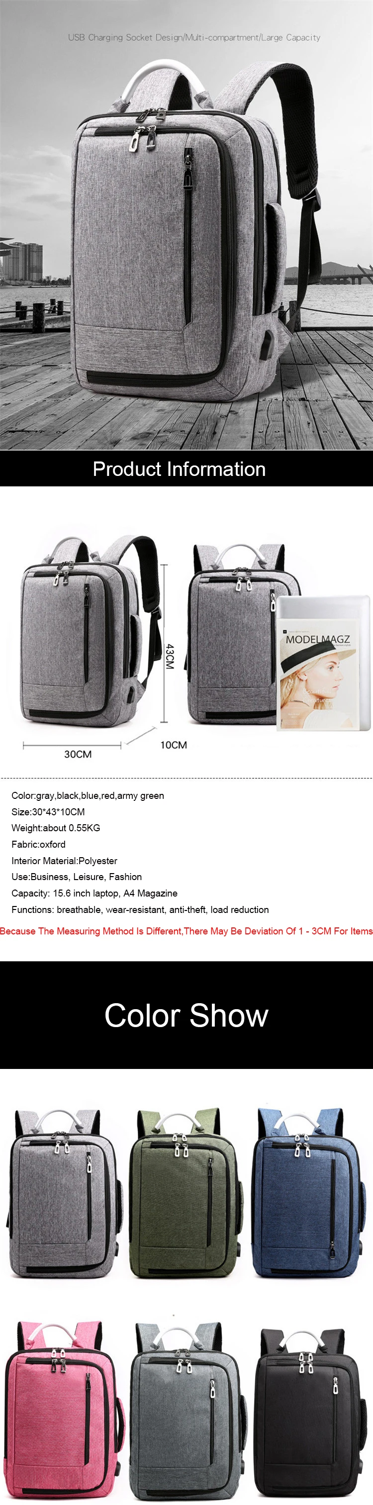 New Fashion Casual Backpack Men Waterproof USB Charging Oxford Laptop Backpack Business Travel Backpacks School Daypack Rucksack