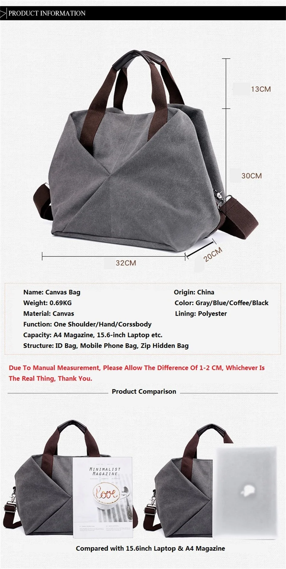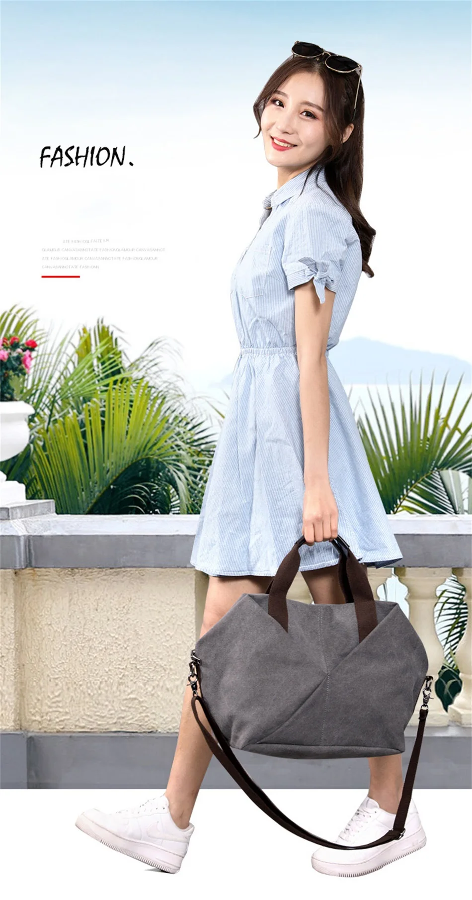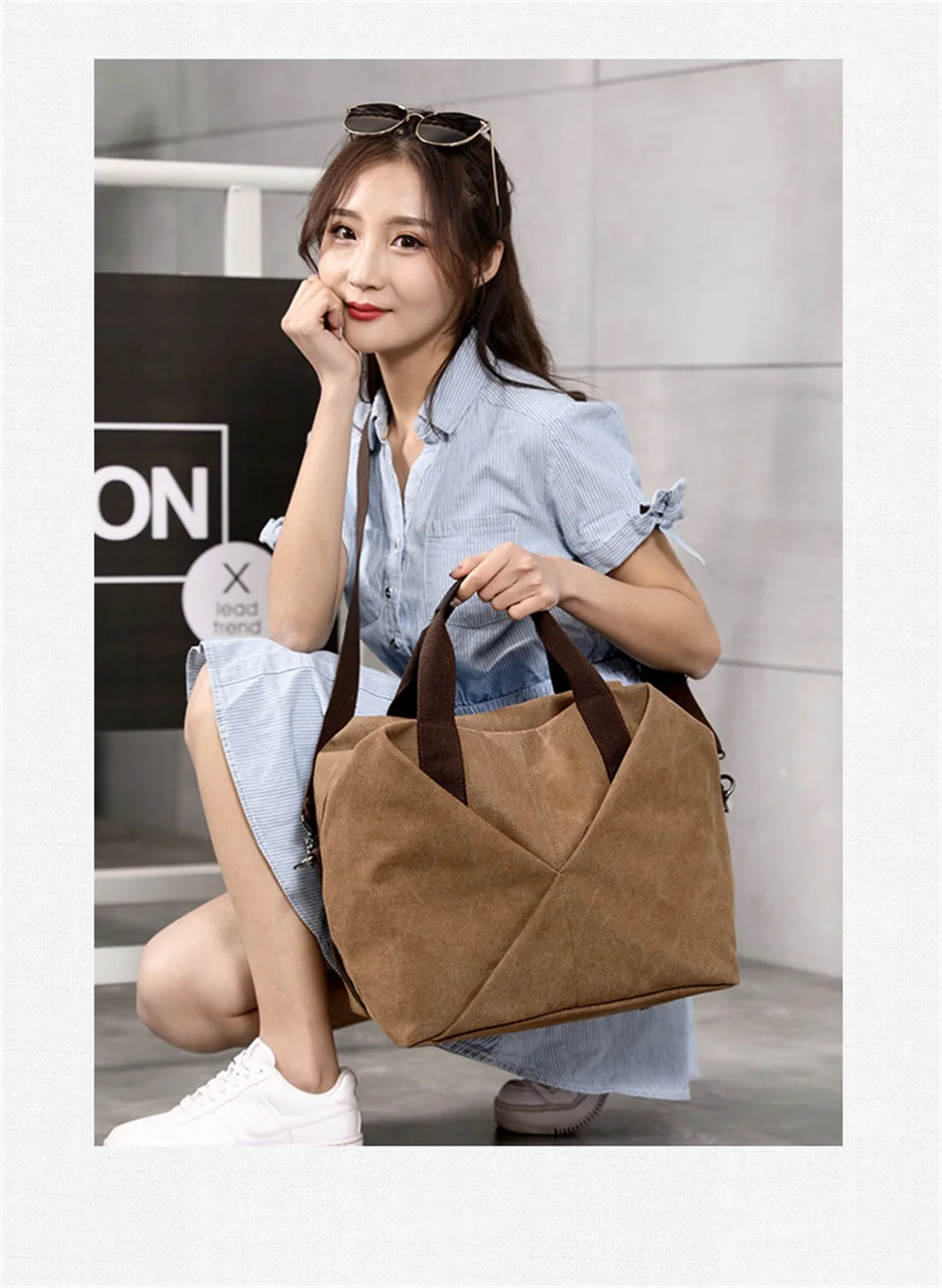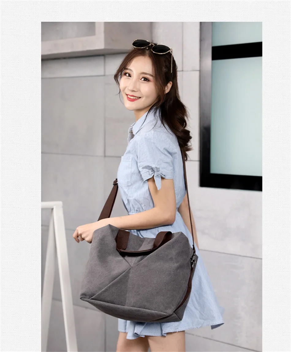 New Female Urban Fashion Canvas Handbags Simple Large Capacity Fashion White Collar Handbag Single Shoulder Crossbody Travel Bag