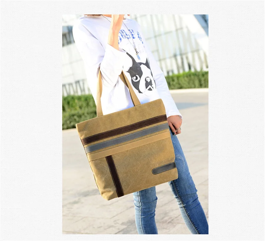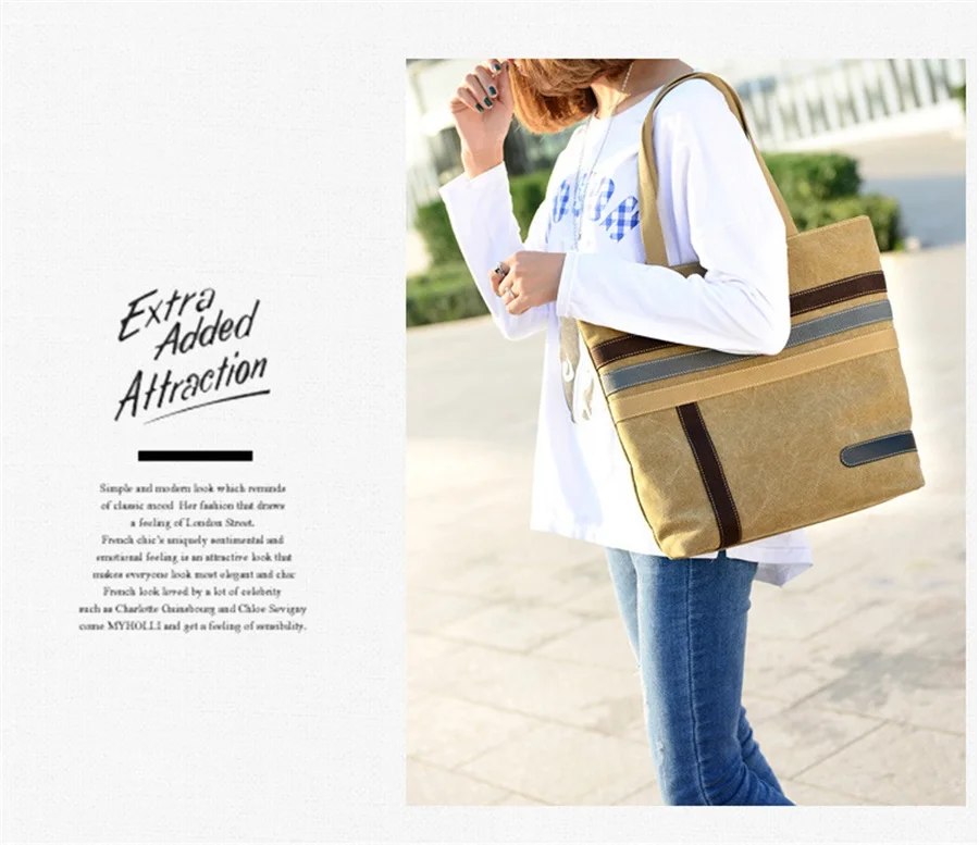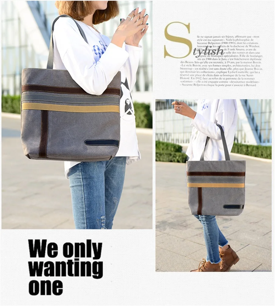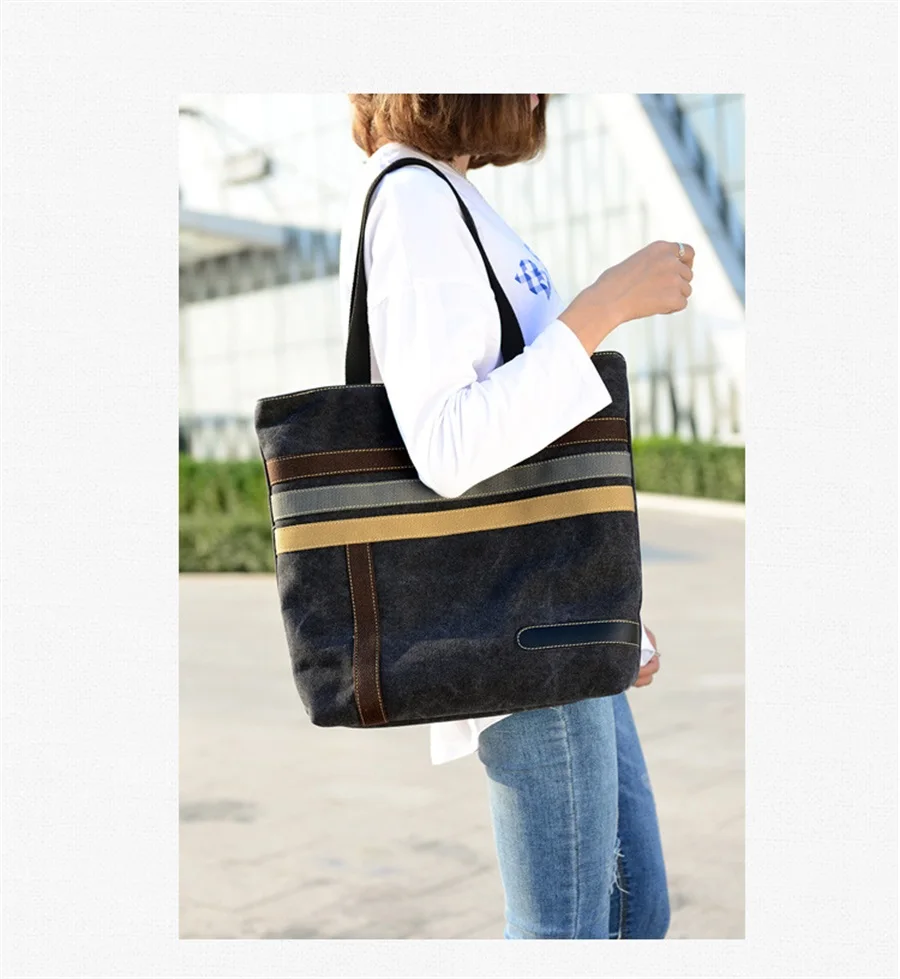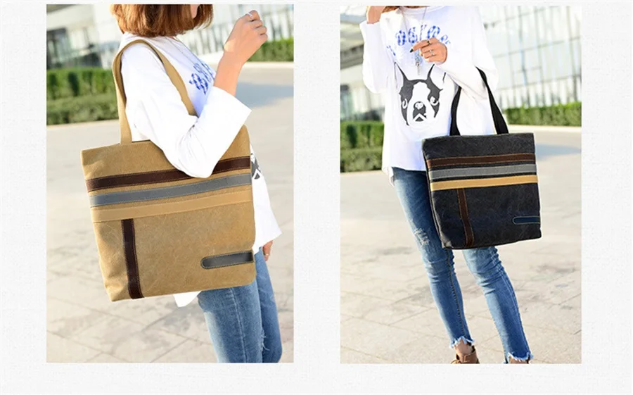 New In 2019 Simple Fashion Canvas Bag Contrast Color One Shoulder Retro Tote Bag Large Capacity Shopping Leisure Travel Backpack