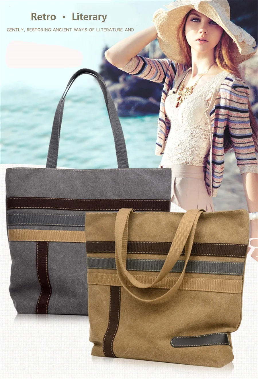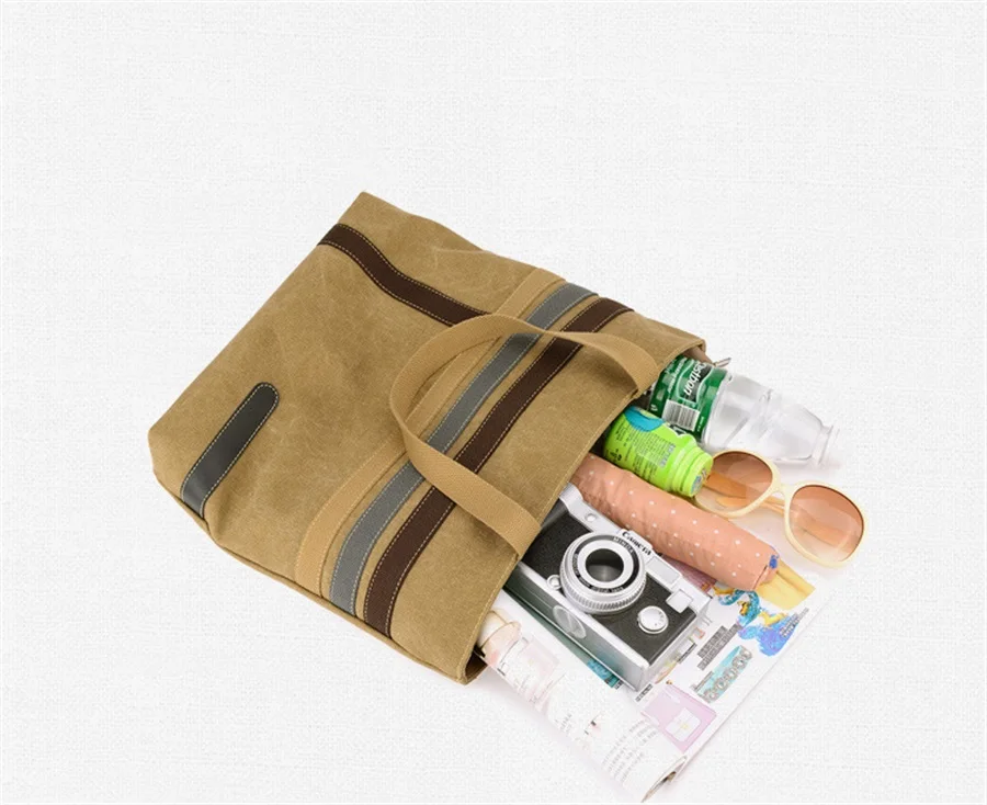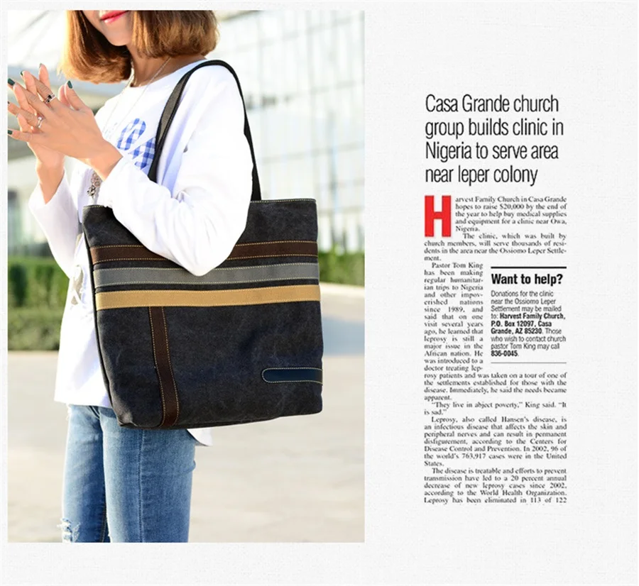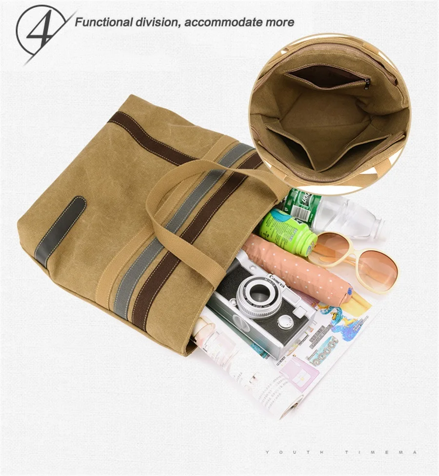 New In 2019 Simple Fashion Canvas Bag Contrast Color One Shoulder Retro Tote Bag Large Capacity Shopping Leisure Travel Backpack
