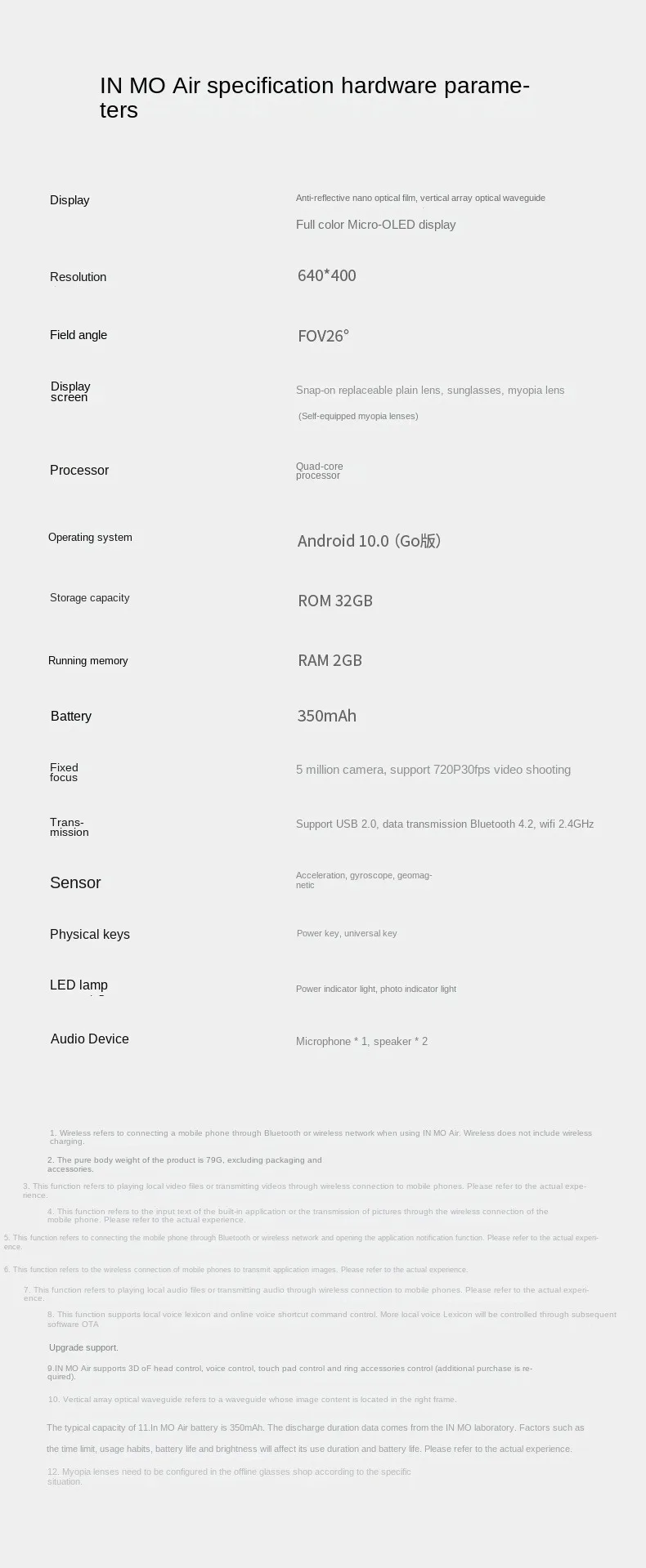 4.The INMO Air is equipped with a 350mAh battery ,which is officially said to last up to 4.5 hours in continuous use and 55 hours in standby.