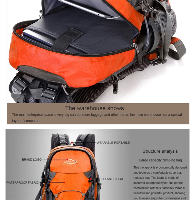 New Travel 40L Hiking Backpack Men Sport Outdoor Camping Climbing Bag Waterproof Large Capacity Mountaineering Tourist Backpacks