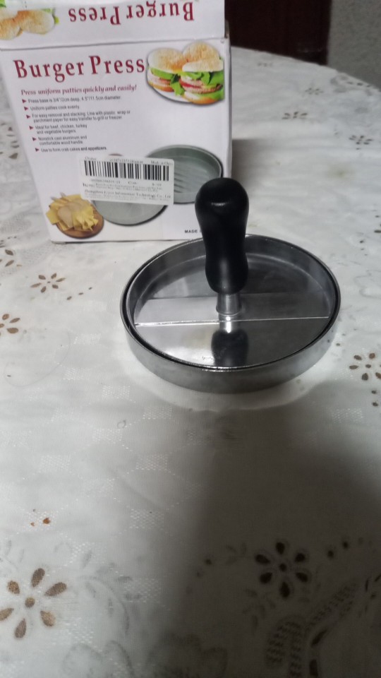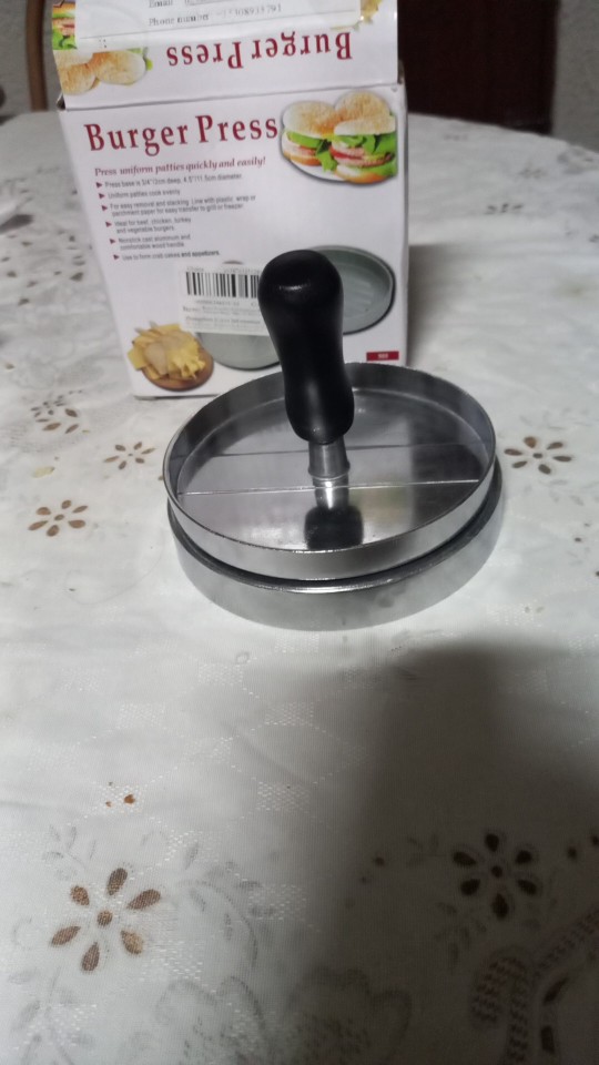 me ha encantado es ideal para mis hamburguesas ya que yo solo puedo comer las que hago yo así nadie sabrá si son echas por mí o compradas quedan exactamente igual que las compradas, uniformes, del mismo tamaño y todo