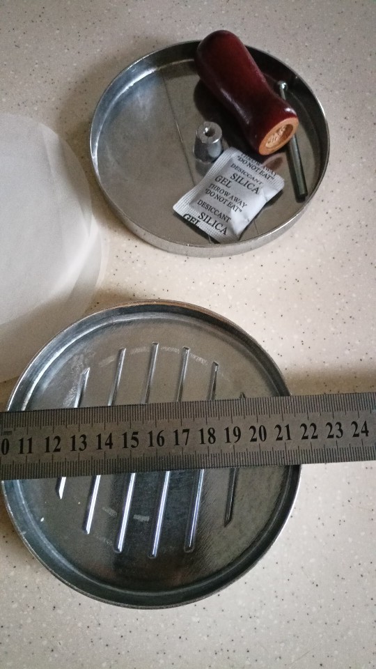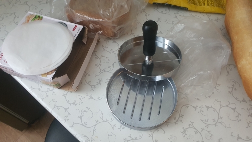 Прибуло на Нову пошту швидко. Нормальний пресс,в комплекті 4 кола під бургети з пергаментного паперу.В цілому рекомендую .Нержавійка метал.