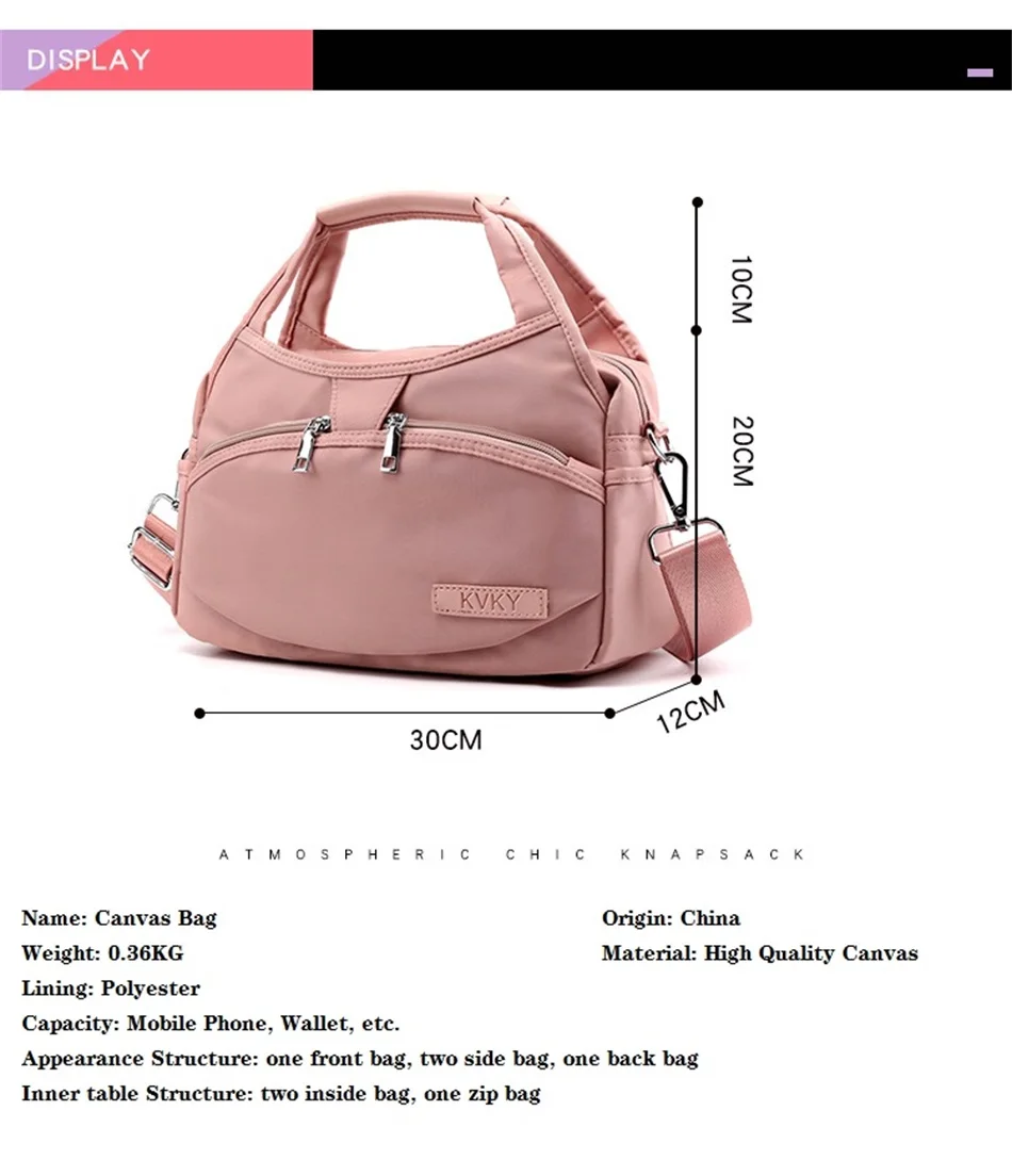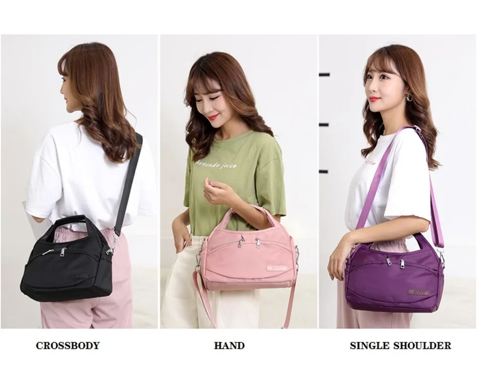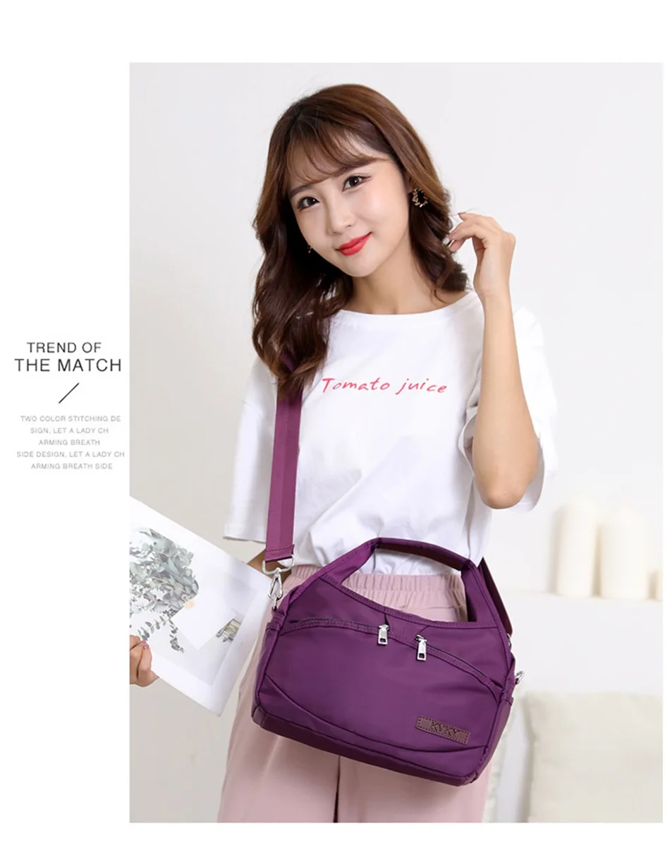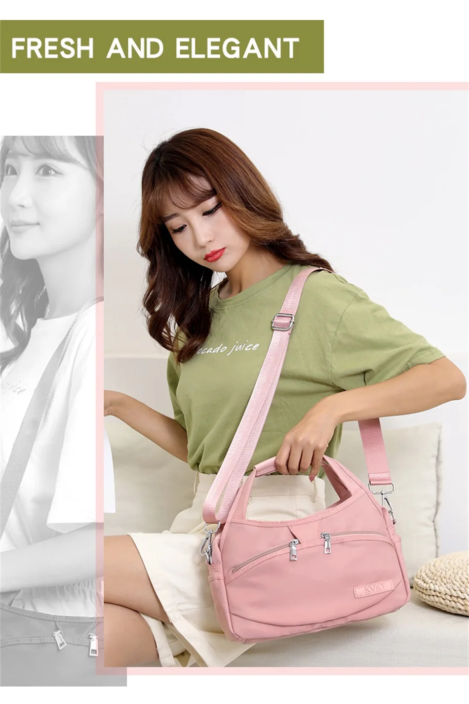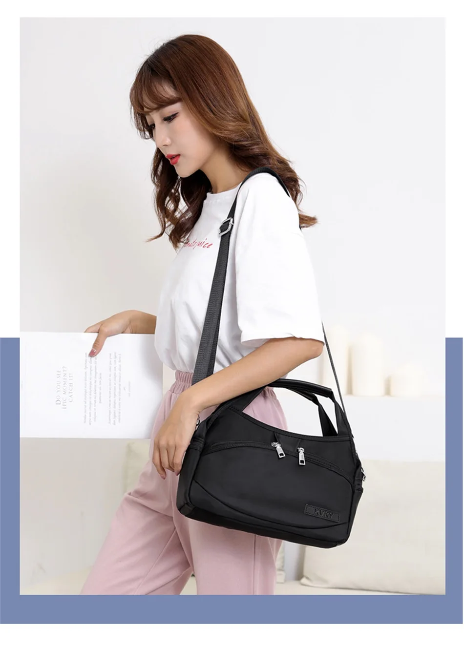 Nylon Cloth Multi Pocket Handbag Oxford Waterproof Solid Color Female Bag Leisure Travel Shopping Single Shoulder Messenger Bags