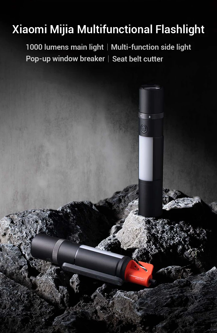 Original Xiaomi Mijia Multifunctional Flashlight Type-c 3100mAh Battery Breaker Seat Belt Cutter Magnetic Emergency Flashlight