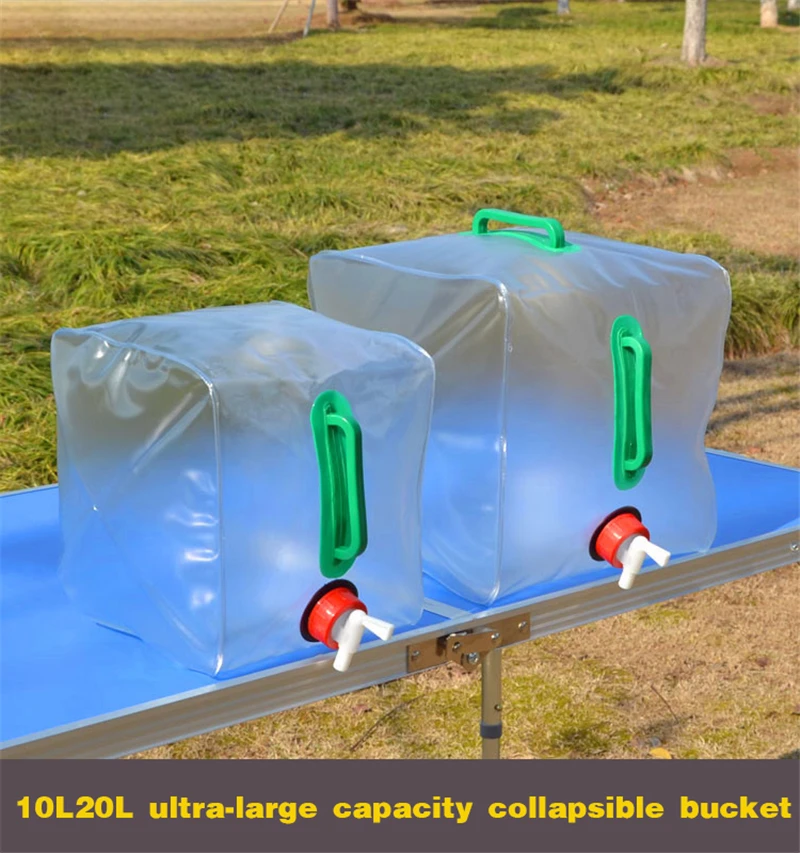 Outdoor 10L/20L Folding Water Bag Large Capacity Portable Water Storage Transparent Container Kettle Bucket Camping Equipment