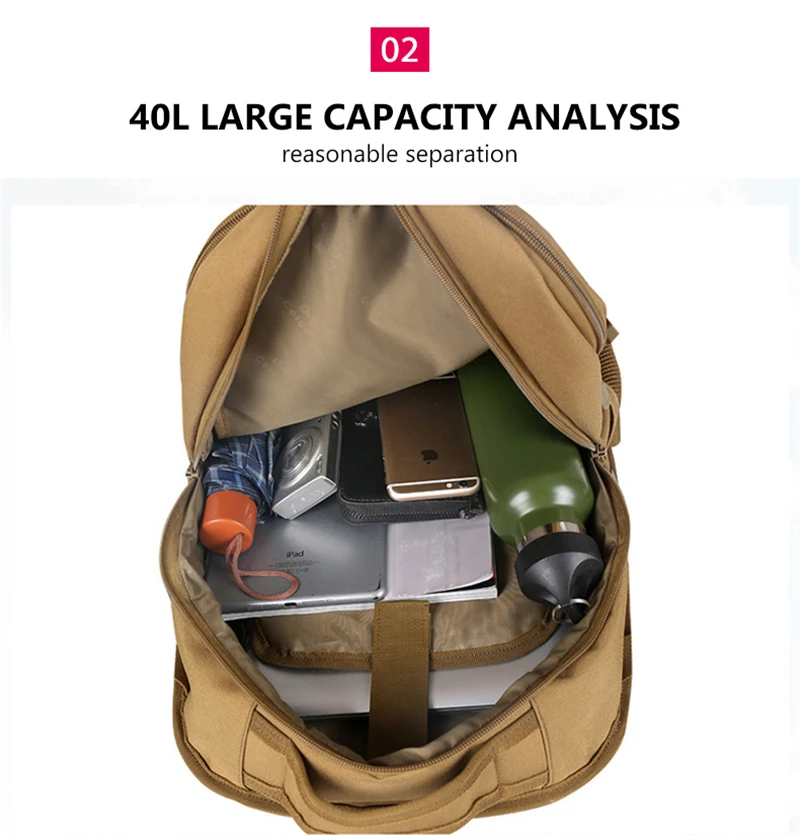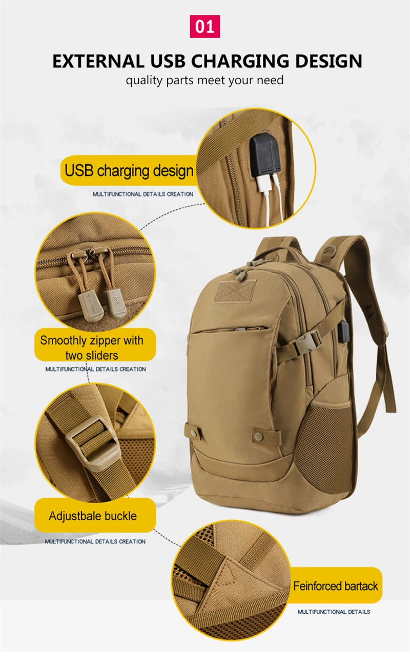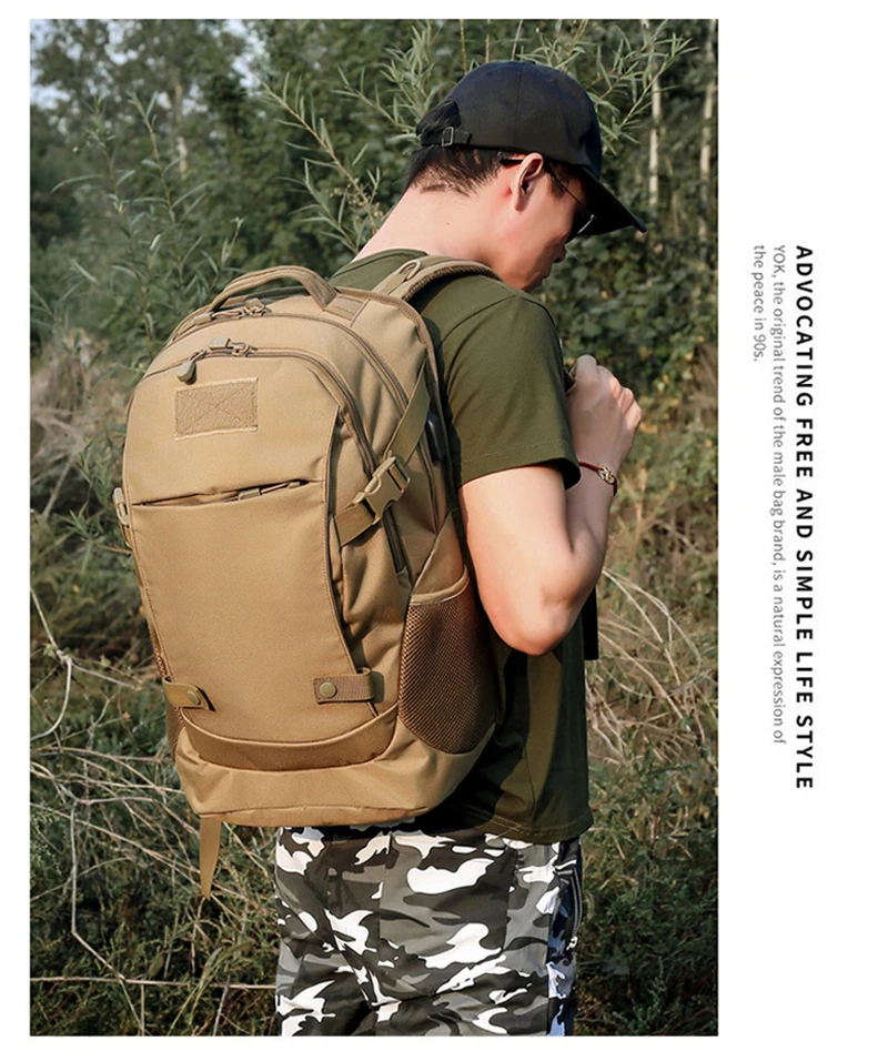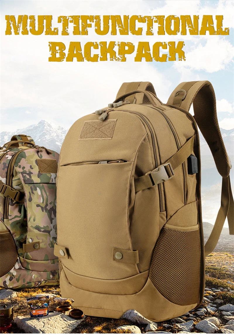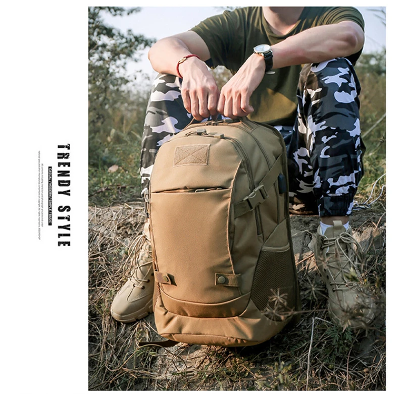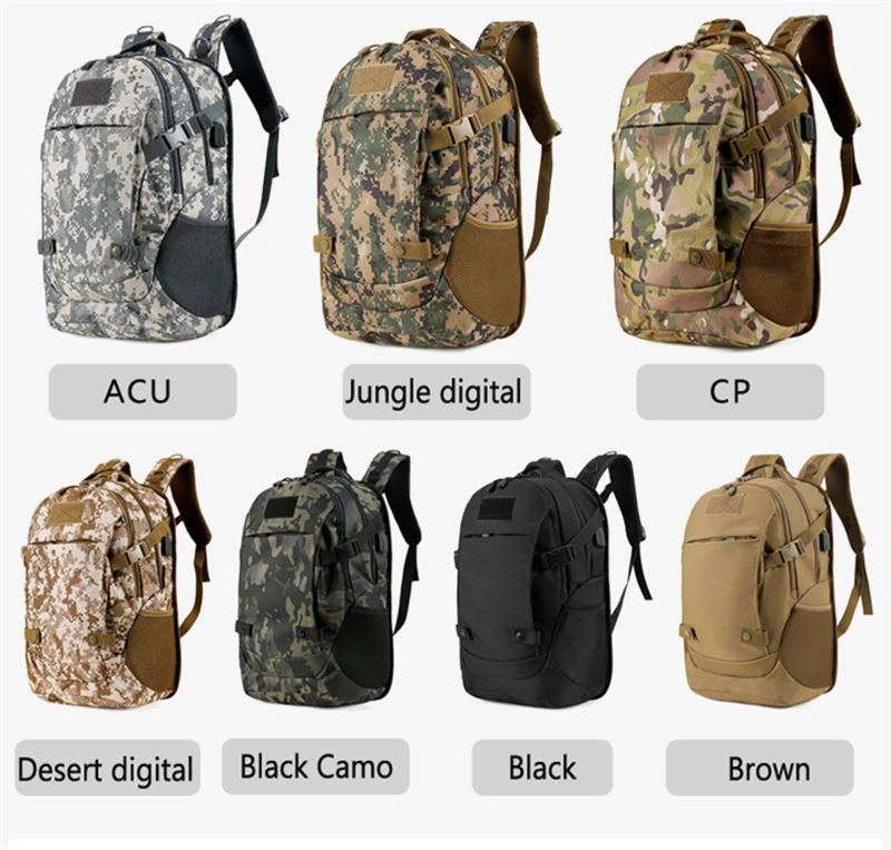 Outdoor 40L USB Charging Camping Backpack Travel Hiking Sport Cycling Tourist Bag Men Camouflage Waterproof Laptop Rucksack Male