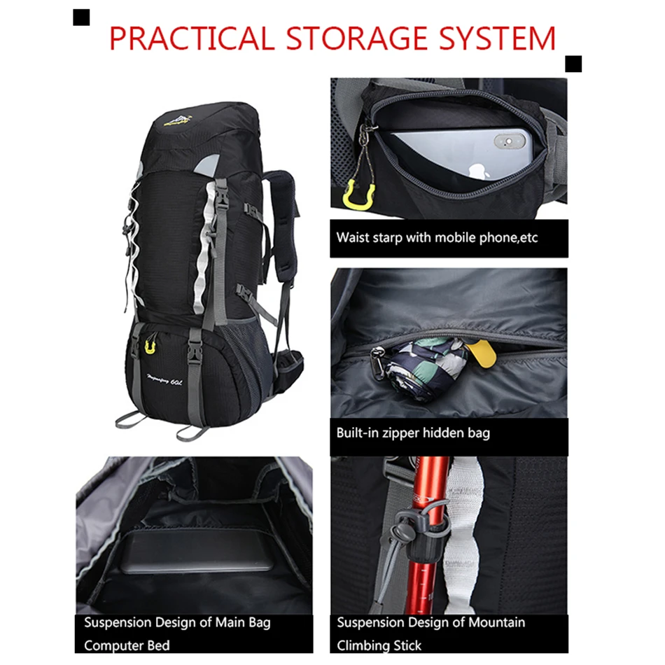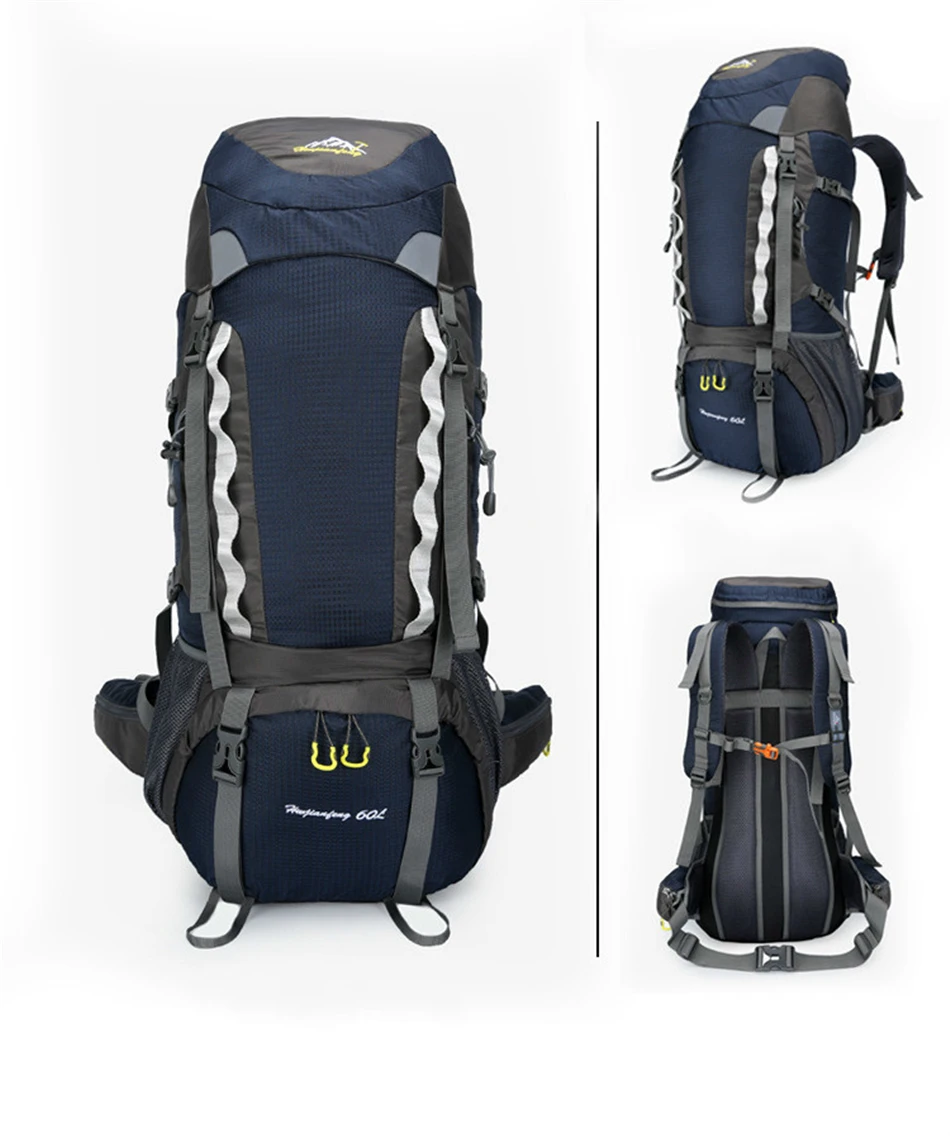 Outdoor 60L Tourist Backpack Hiking Travel Mountaineer Wear Resistant Backpacks Waterproof Nylon Trekking Camping Bags Men Women