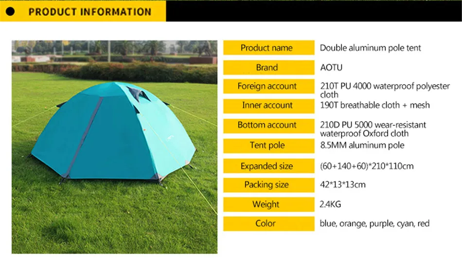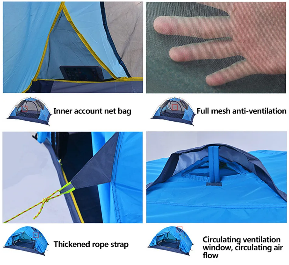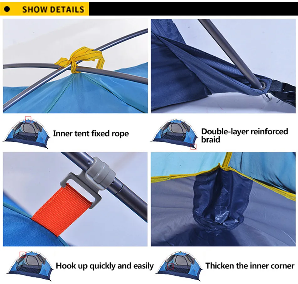 Outdoor Camping 2-3 People Rainproof Tent Single Double Sunscreen Moistureproof Waterproof Tent Field Camping Beach Fishing Tent