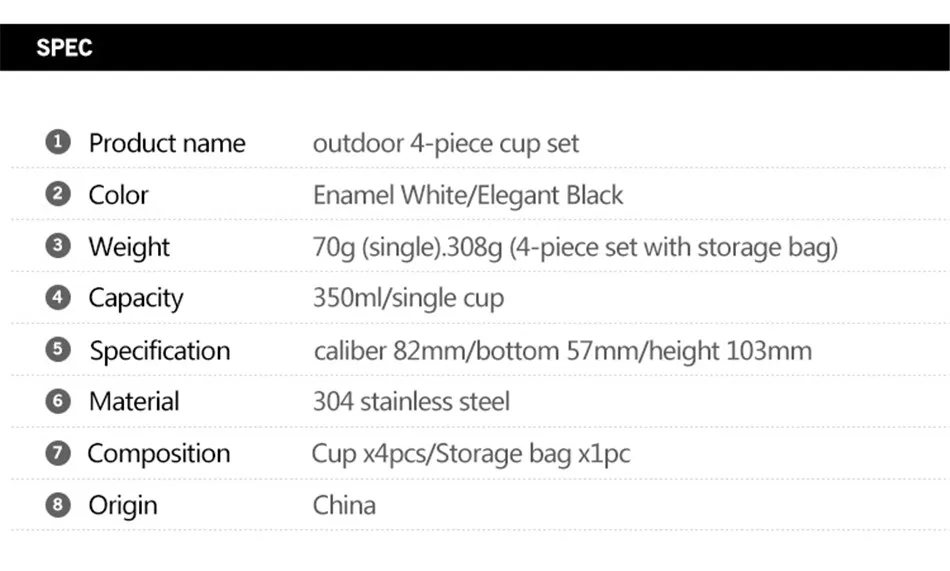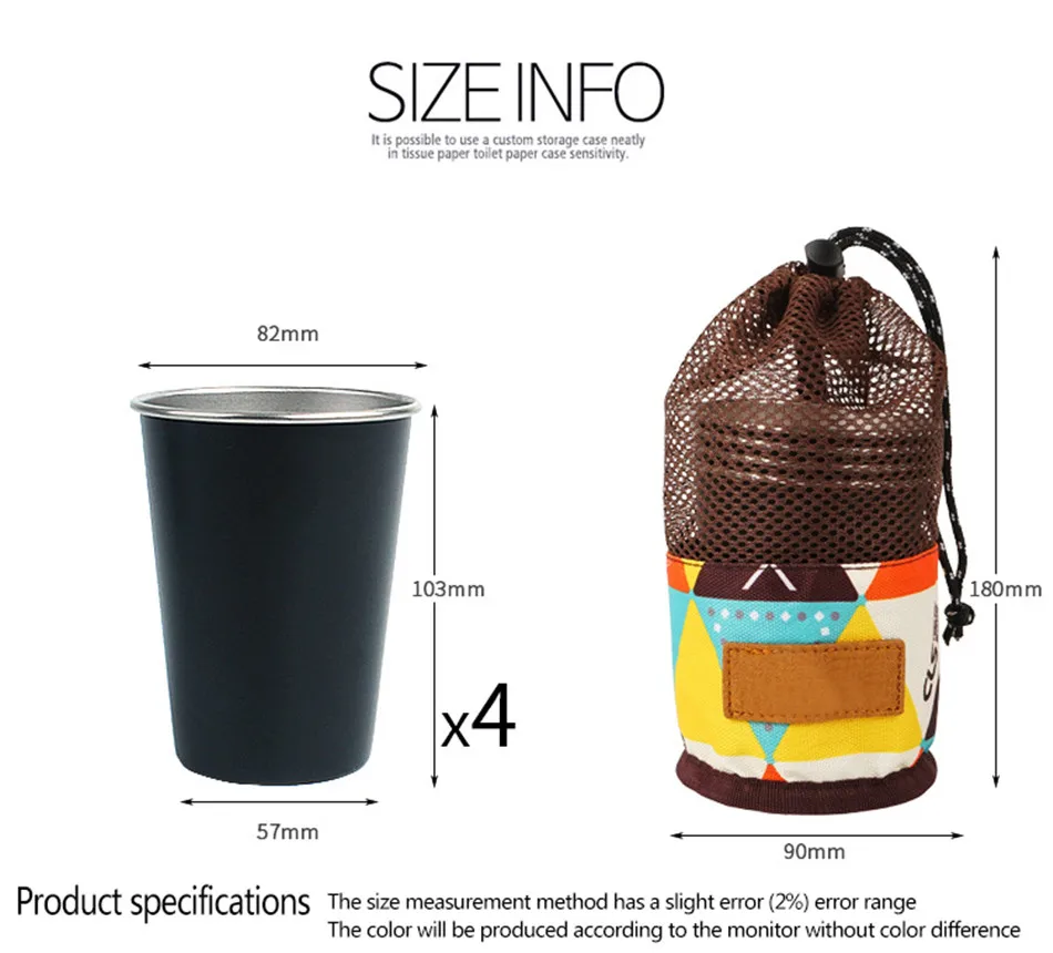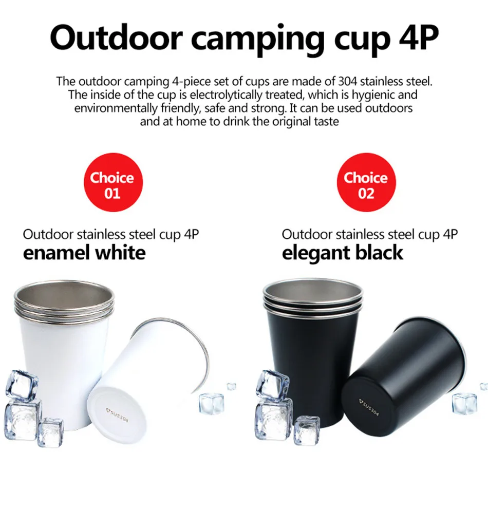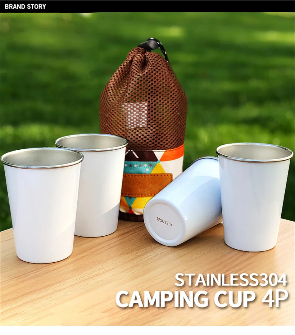 Outdoor Camping 304 Stainless Steel Cup Picnic 4-Piece Barbecue Beer Mountaineering Drinking Cup Family Dinner Milk Coffee Cup