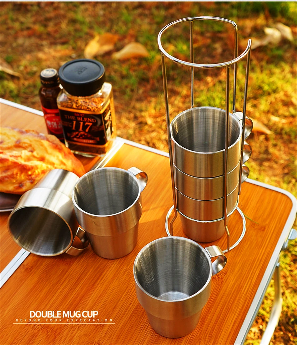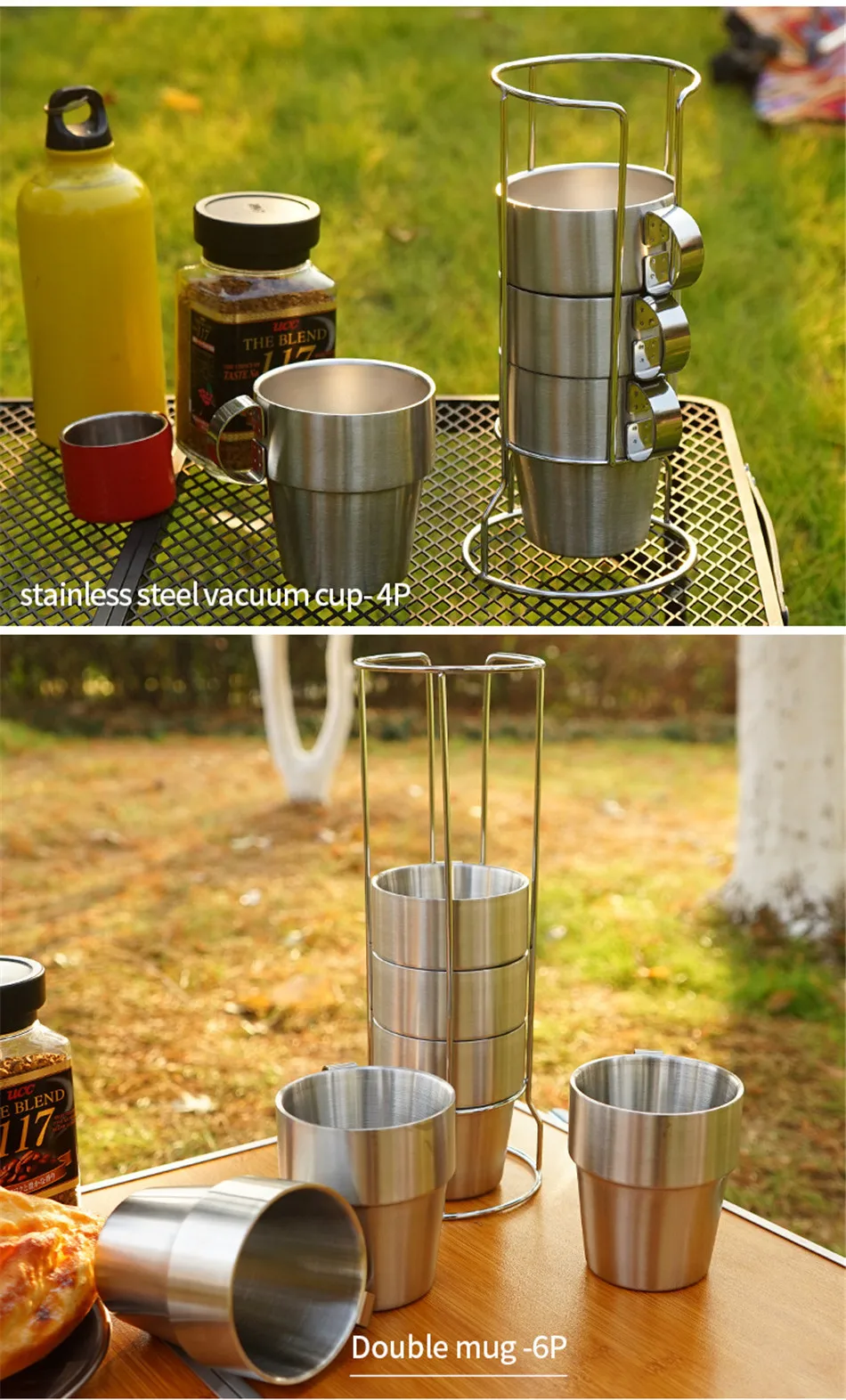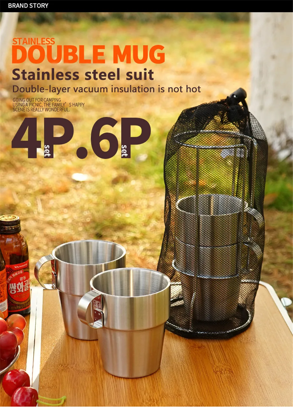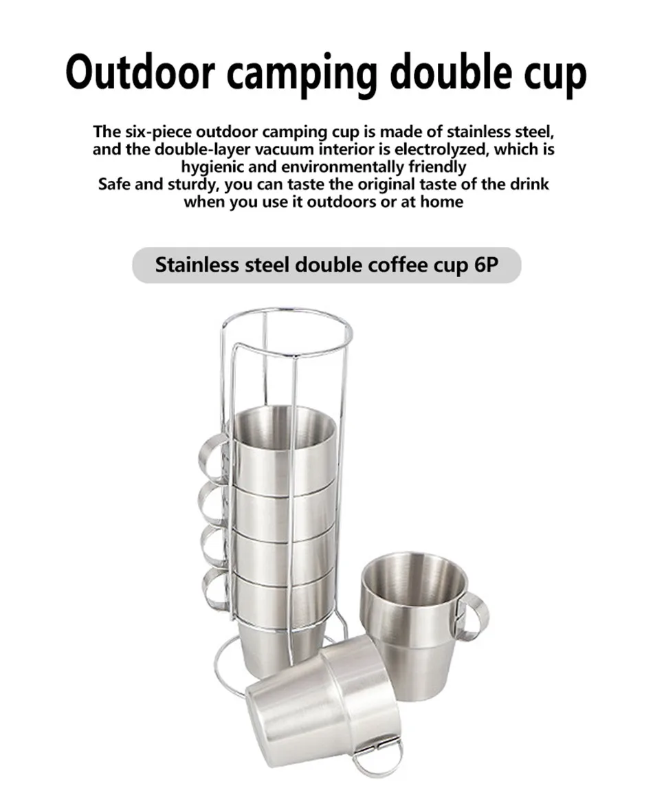 Outdoor Camping Non-magnetic 6P set of Stainless Steel Thermal Insulation Anti-scalding Coffee Cup Picnic Cup Double Insulation